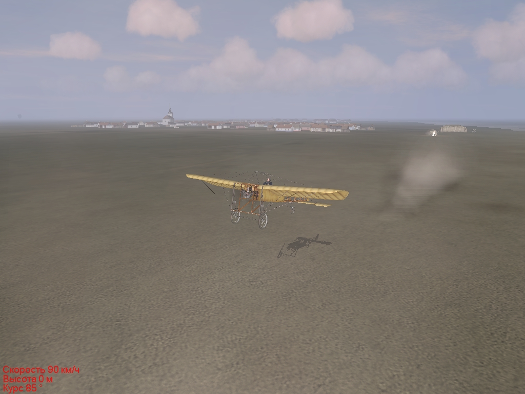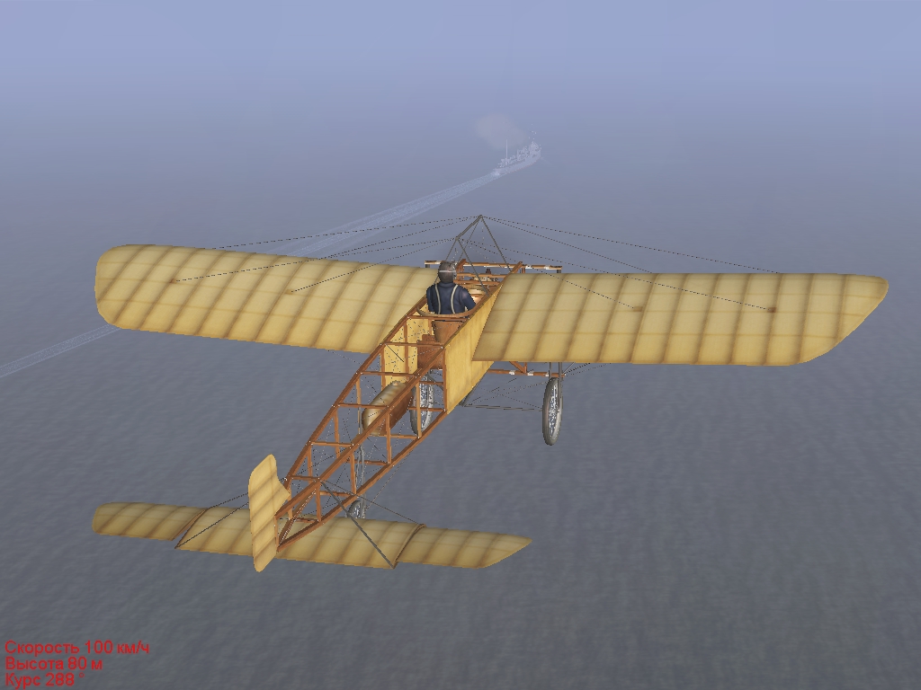 Вы французский авиаконструктор и летчик Луи Блерио решили сегодня выполнить демонстрационный перелет через пролив Ла-Манш на самолете-моноплане собственной конструкции «Блерио XI» в самом узком месте пролива между французским городом Кале и английским городом Дувр – это около 40 км. Премией за успешный перелет является денежная сумма в размере 1000 фунтов стерлингов. На вашем самолете нет никаких навигационных приборов, даже компаса. Но, несколько ранее из порта Кале в порт Дувр вышел французский боевой корабль – эсминец «Escopette». По предварительной договоренности этот корабль обеспечивает страховку вашего перелета, в случае необходимости выполнит спасательную операцию, а так же своими дымами обеспечивает ваше ориентирование в открытом море. Эсминец движется в направлении Дувра со скоростью примерно 26 узлов (48 км/час). Чтобы не потерять визуальный контакт с эсминцем скорость вашего полета должна быть не более 70 км/час, высота полета не более 100 м. Вашим ориентиром при подлете к берегу Англии в районе города Дувр будут прибрежные скалистые склоны меловых гор белого цвета – будьте внимательны их высота достигает 100 м и выше. На прибрежных холмах расположен Дуврский замок. Выполните несколько кругов над ним, выберите подходящую для посадки поляну перед замком и произведите посадку на нее – ориентиром могут служить скопления автомобилей встречающих на этих полянах. Если место для посадки на полянах перед замком выбрать не сможете, уходите на северо-восток от замка, там имеется большая ровная площадка, пригодная для посадки – на ней выложен посадочный знак. Успешного перелета! Скин самолета: Bleriot XI_1909.bmp |