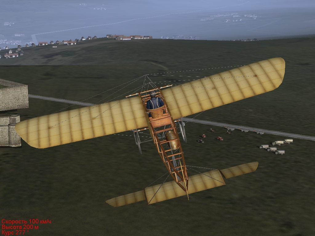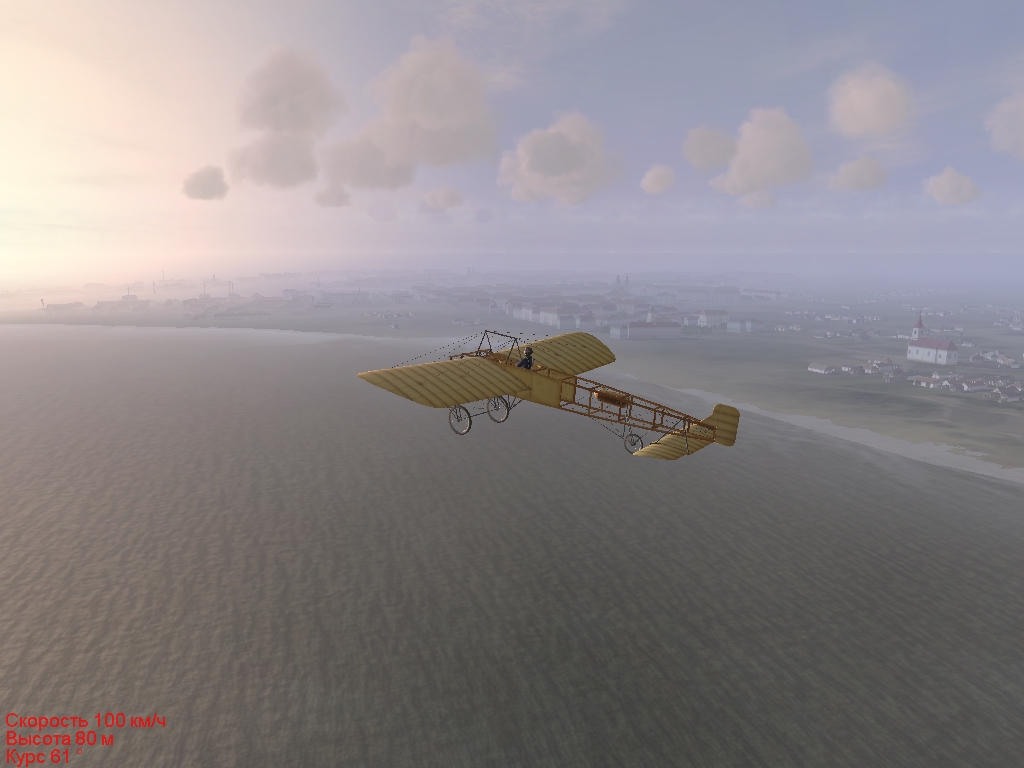 Вы французский авиаконструктор и летчик Луи Блерио решили сегодня выполнить демонстрационный перелет через пролив Ла-Манш на самолете-моноплане собственной конструкции «Блерио XI» в самом узком месте пролива между французским городом Кале и английским городом Дувр – это около 40 км. Премией за успешный перелет является денежная сумма в размере 1000 фунтов стерлингов. На вашем самолете нет никаких навигационных приборов, даже компаса. Но, несколько ранее из порта Кале в порт Дувр вышел французский боевой корабль – эсминец «Escopette». По предварительной договоренности этот корабль обеспечивает страховку вашего перелета, в случае необходимости выполнит спасательную операцию, а так же своими дымами обеспечивает ваше ориентирование в открытом море. Эсминец движется в направлении Дувра со скоростью примерно 26 узлов (48 км/час). Чтобы не потерять визуальный контакт с эсминцем скорость вашего полета должна быть не более 70 км/час, высота полета не более 100 м. Вашим ориентиром при подлете к берегу Англии в районе города Дувр будут прибрежные скалистые склоны меловых гор белого цвета – будьте внимательны их высота достигает 100 м и выше. На прибрежных холмах расположен Дуврский замок. Выполните несколько кругов над ним, выберите подходящую для посадки поляну перед замком и произведите посадку на нее – ориентиром могут служить скопления автомобилей встречающих на этих полянах. Если место для посадки на полянах перед замком выбрать не сможете, уходите на северо-восток от замка, там имеется большая ровная площадка, пригодная для посадки – на ней выложен посадочный знак. Успешного перелета! Скин самолета: Bleriot XI_1909.bmp |