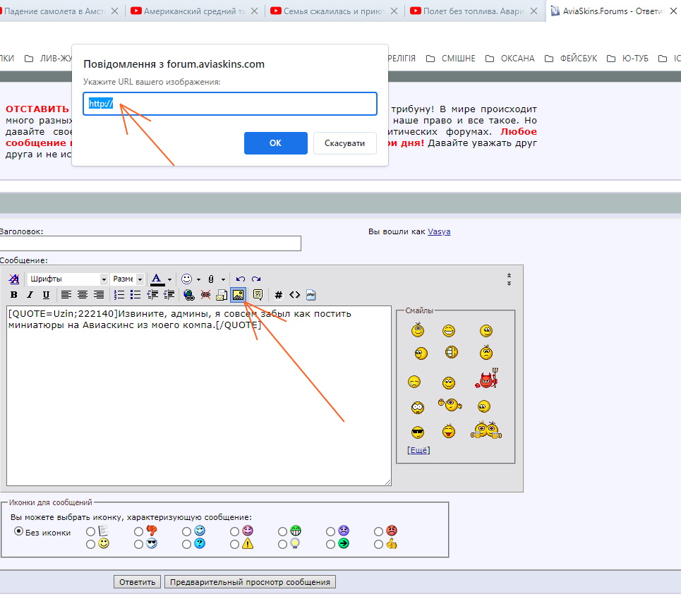 картинку на другой ресурс и потом вставить ссылку - как на моём 3 скрине.