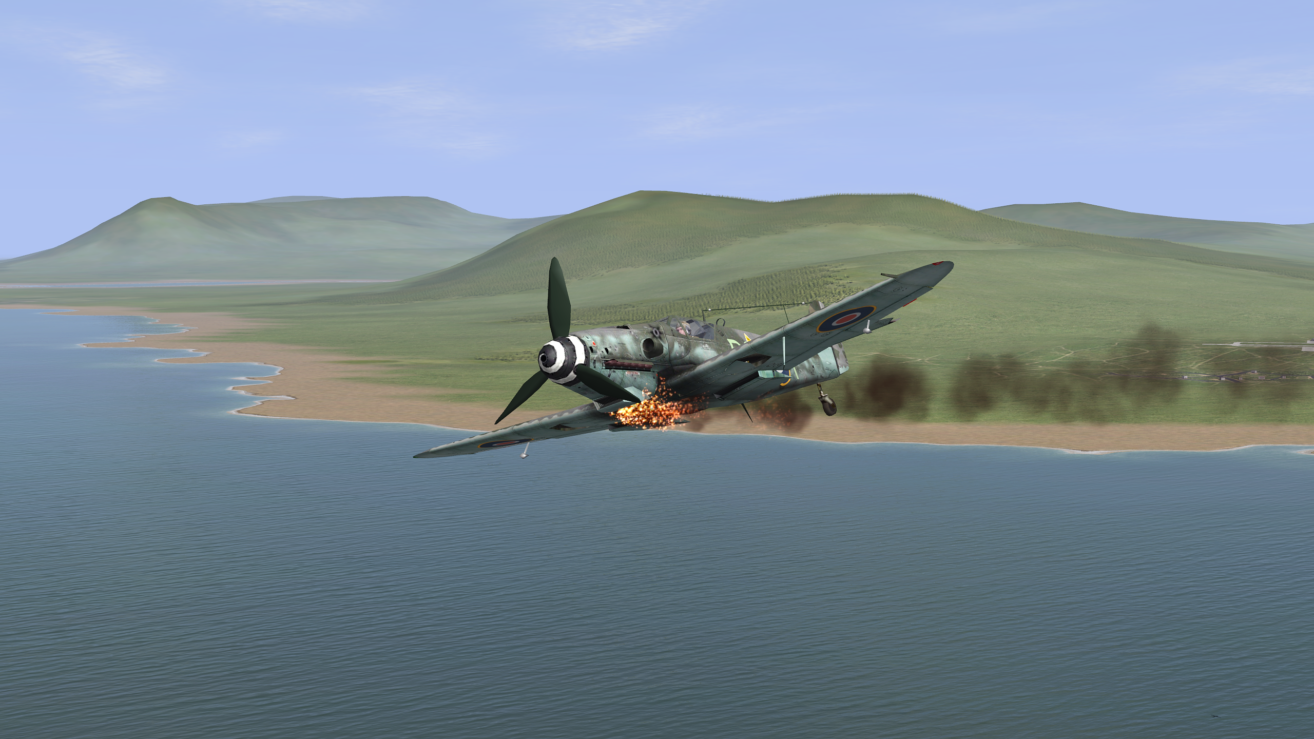 По дыму от масла, чем дальше - тем больше: для пробы добавил то тёмно-красные "горящие капли масла", то пламя - скрин 1, а то такое дымище и без огня и пусть возможно опять не по реалу, но зато смотрится и сразу понятно, что повреждено, а то чёрно-белый дым есть ещё от движка, так что различие уже есть. А вот капли видно, что это капли, только вблизи и с уменьшением времени, поэтому оставил пламя, да и издалека оно виднее - скрин 2.