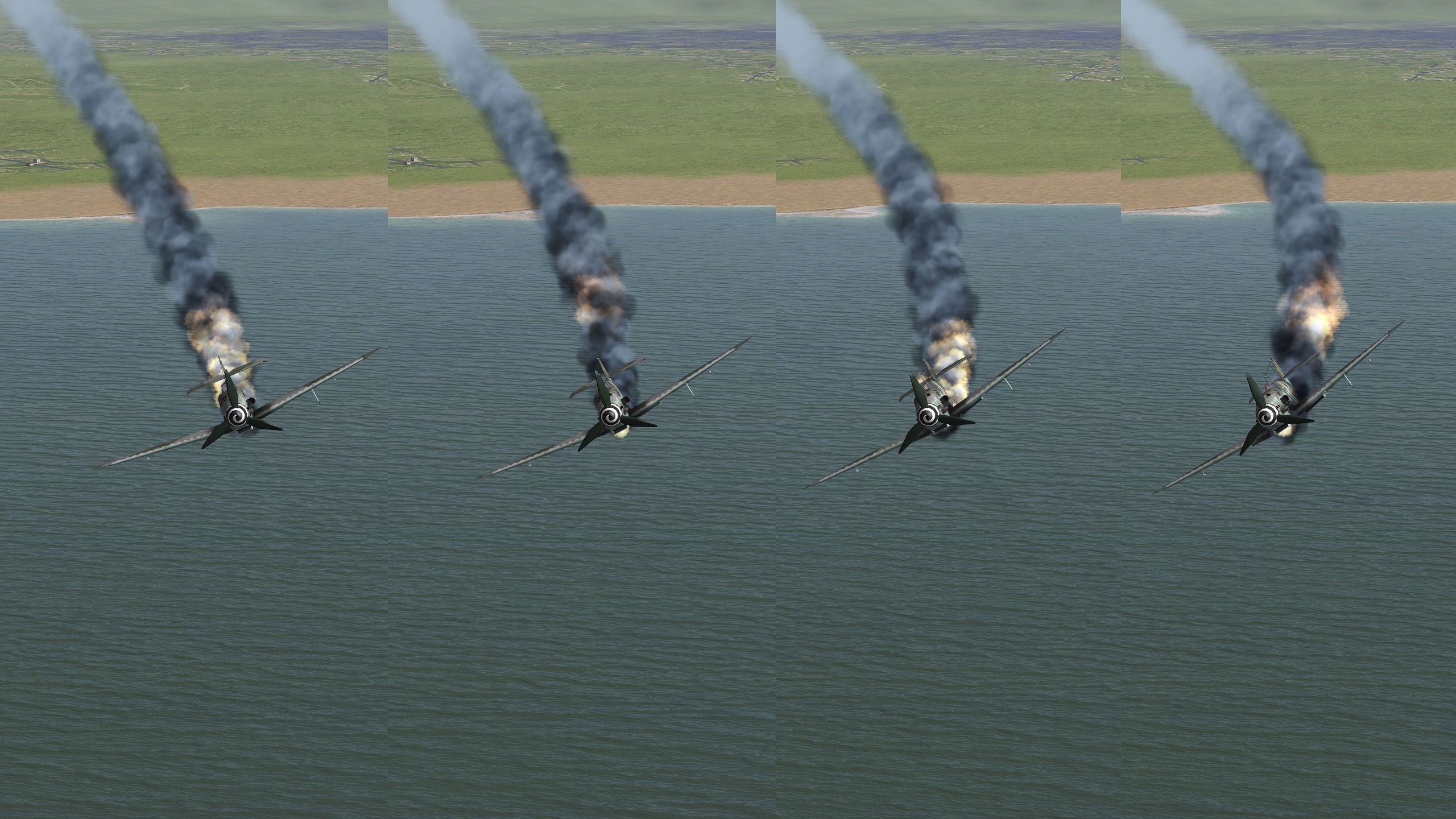 Есть такой класс AircraftState по самолётным дымам, который "неправильно" написан, но всё же удалось добавить 2-й дым при повреждении маслопровода и без последствий для других дымов..., но пока проверяю. Ну а решил всё-таки сделать очередную попытку, т.к. не очень то был доволен своим же переделанным видом дыма - на 2-м и 3-м скринах средняя часть, а уже с двумя дымами - чёрным и серым, смотрится лучше - на 2-м и 3-м скринах правая часть, ну а левая - дефаултный дым для сравнения, а 1-й скрин - начало, откуда взялся дым. А вот топливным и моторным дымам добавить никак...
