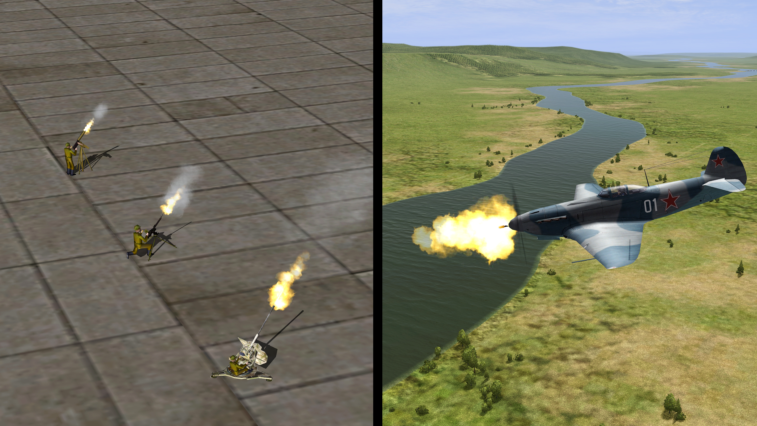 Пару дней назад включил смарт тв на телике и заметил хронику 2-ой мировой в цвете на Тихом, которую ещё не смотрел. Посмотрел, качество - мыло, но видно, что подбитый вошёл в воду под острым углом и конечно фонтан брызг и для меня новое - огонь, растянувшийся по ходу, как будто выплеснули цистерну горящего топлива. Что был за самолёт - гадать не буду, но вот сколько пересмотрел к/хроники, так видел только фонтан воды, а тут такое и поэтому решил добавить к пятну от топлива - вспышку от этого топлива, ну хоть что-то. А добавил вспышку, добавил и отсвет на воде - скрин 1, ну и пришлось добавить отсвет и к взрыву на земле - скрин 2, но в дневное время это всё малозаметно, а вот в вечернее - нормально, так что добавляйте с первого поста.