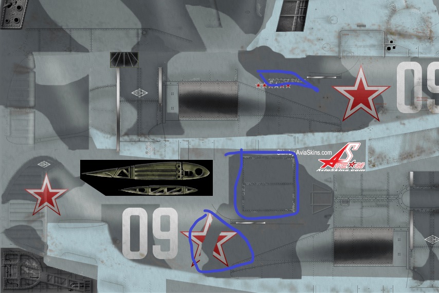 И это. Предлагаю звёздочки сбитых лепить следующим образом. - У кого в один ряд - над звездой ОЗ. (см. скрин) - У кого 2-3 ряда - на борту под фонарём. Решать тебе.