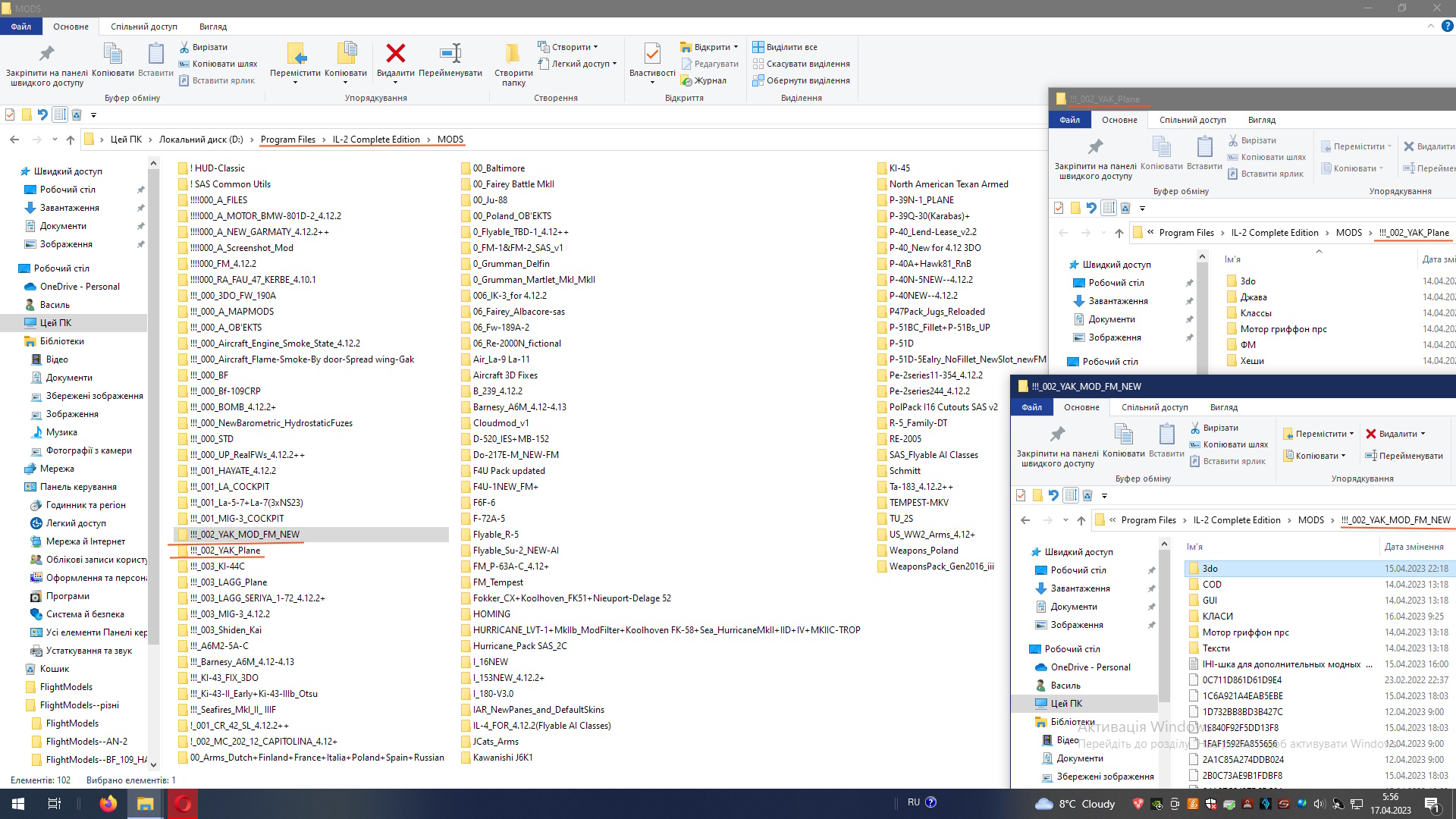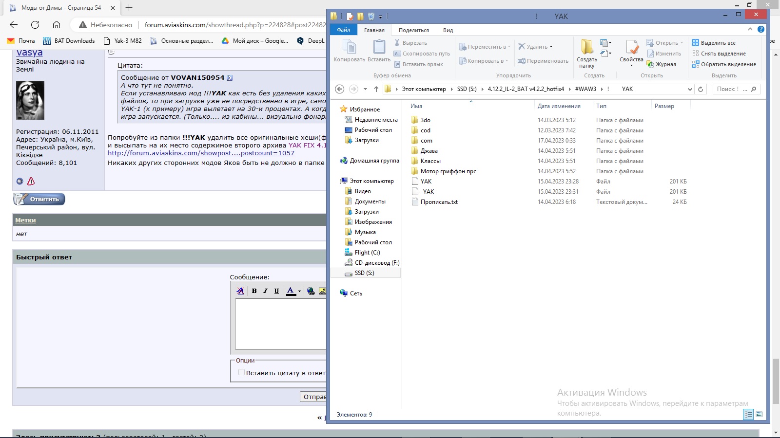 и высыпать на их место содержимое второго архива YAK FIX 4.12.2.rar http://forum.aviaskins.com/showpost....postcount=1057 Никаких других сторонних модов Яков быть не должно в папке с модами.