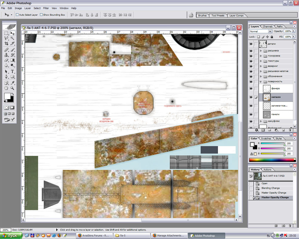 Далее слою с металлом придается прозрачность 4%, фанере 35% и слой с фанерой переводится в режим наложения мультипли - этим убирается ее высветляющий эффект. Теперь ты андерстенд май френд, почему у тебя лючки темнее были?