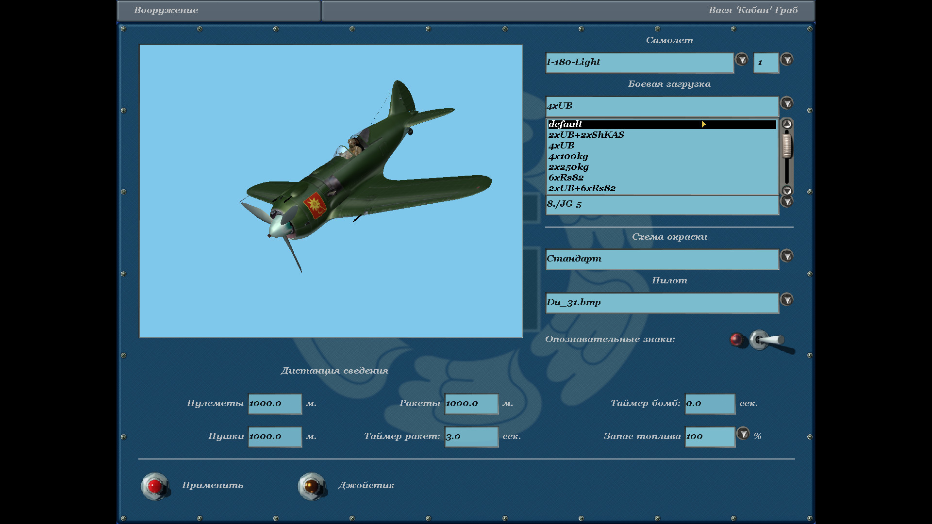 I-180 air.I_180 1 NOINFO r01 SUMMER I-180-Light air.I_180_L 1 NOINFO r01 SUMMER I-180-M-88F air.I_180_NEW_FM 1 NOINFO r01 SUMMER Выкладывал его по прозьбе чувака из САС. Но так как он не озвучил что ему конкретно нужно, то я предложил из закромов под поздние патчи. Потом оказалось, что ему нужно под 4.09. Поэтому переделал старый Лакотовский И-180 обратно под древний патч. ------------- Дядя Слава почему то ухватился за этот старый И-180, наверное думая что он новый. Поскольку начался испорченый телефон и сваливание разных файлов из разных модов в одну кучу - то имеем историю, что я "предлагаю неработающий правильно мод"(который на 95 проц. не мой). --------------------------- Поставил I_180-V3.0 в в патч 4.12.2. Специально скачал из Гугл-диска, распаковал архив и поместил в папку МОДС (никаких других папок с И-180 не устанавливал). В окне простого редактора И-180 в новом кузове нормально собирается, скины одеваются. Миссия грузится, автопилот адекватно управляет моделью. Все рулевые поверхности нормально отклоняются. Последний раз редактировалось Vasya; 28.06.2023 в 20:35. Причина: исправление ошибок |