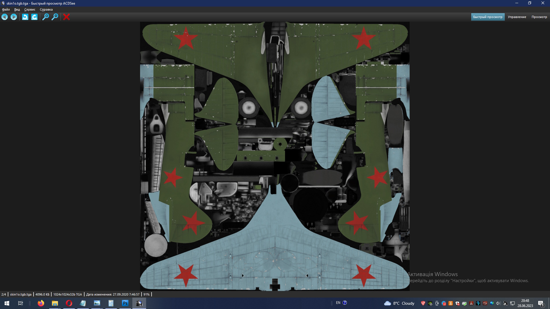 Нормальные там файлы. Открываються в 3 программах: паинт, айсидиси и фотошопе конечно. И скины надеваются - скрины ниже. На скорую руку залил хвост оранжевой краской в фотошопе - Ил увидел этот скин аля-муйня(я не скинодел вообще и никак). Также и неродной скин от И-185 "натягивается", но посколько маппинг от другого самолёта, то и вид неправильный. У меня руки вообще "не прямые" в делах скиноделания. Главное - внимательность при установке мода, а он рабочий на 99 проц., если забыть о двух "ненастроенных" приборах в классе кокпита. Своими словами не принуждаю вас снова ставить мод или отвечать тут. Это пишу для читателей форума. Не помню где скачивал мод - на САС не нашёл его. Поскольку переделывал классы и фм, то отвечаю за то, что предлагаю пользователям. А файлы тга из папки саммер вполне стандартные для игры и никаких " неправильно отображает" в них нет. Как то так, папки для И-180 в новом кузове и скрины прилагаю.