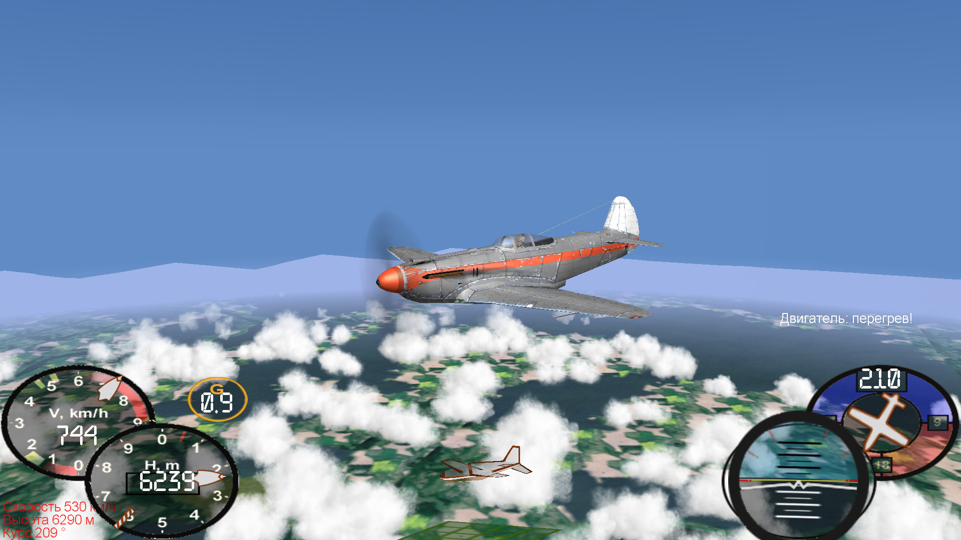 Не хватает ему в общем 5 передачи. 700 елелеле выжал. на 6300 высоте. Радиатор похоже слишком эффективный. Открыл - и почти сразу мотор остыл. По скажем так документам - был крайне теплонапряжённый мотор. |