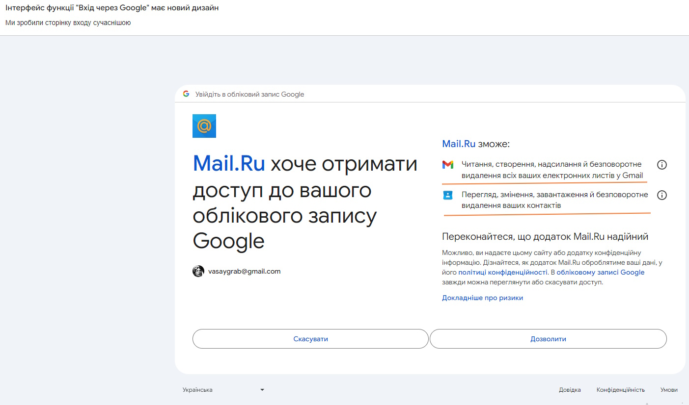 Но там есть одна бяка: мейл-ру хочет читать у управлять моей почтой в гугле.Охереть, я на такое не подписуюсь.
