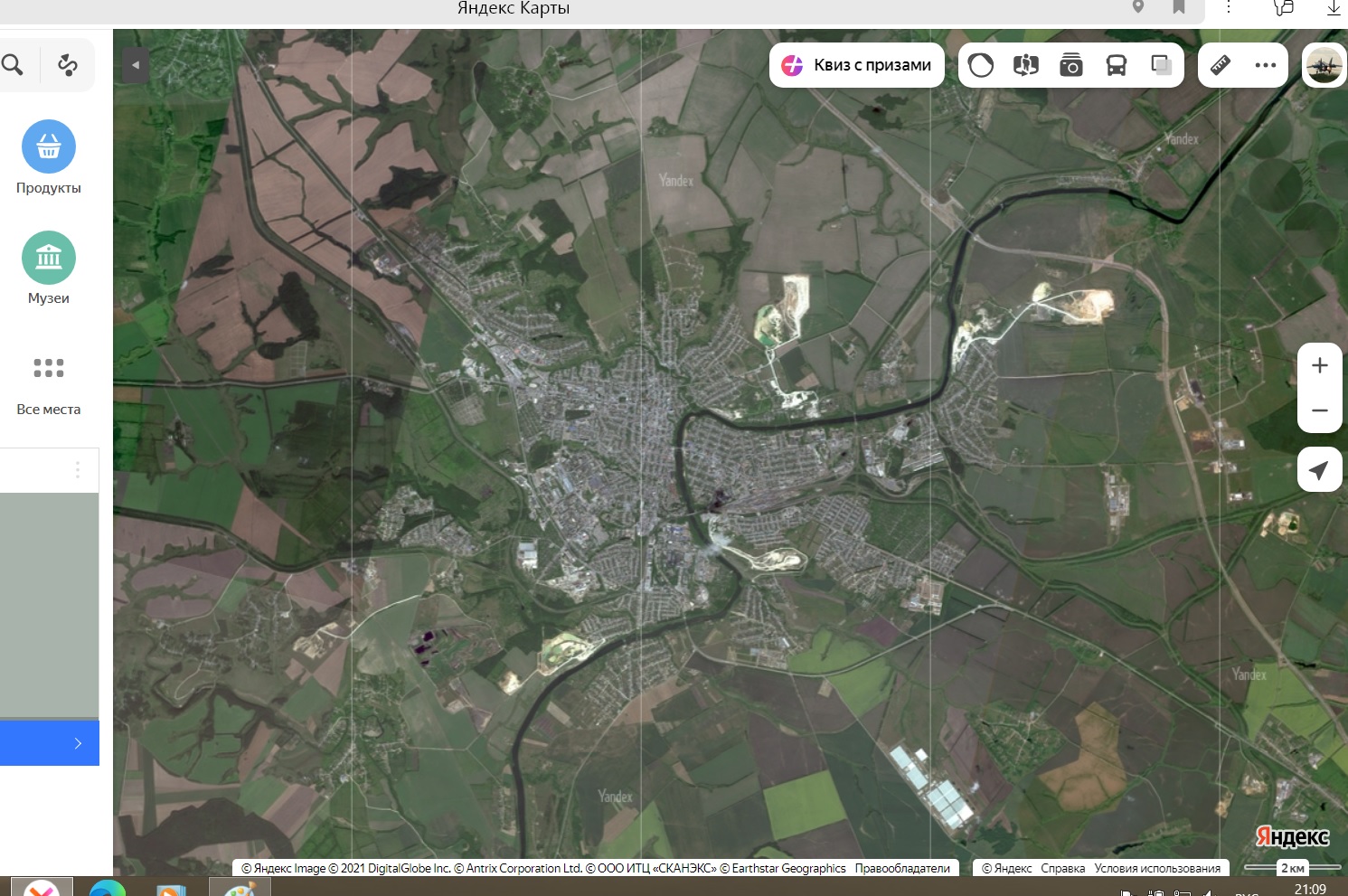 Не могу удержаться: город Елец, Яндыкс карты. Очень хорошо видно на фоне полей (контрастирует)