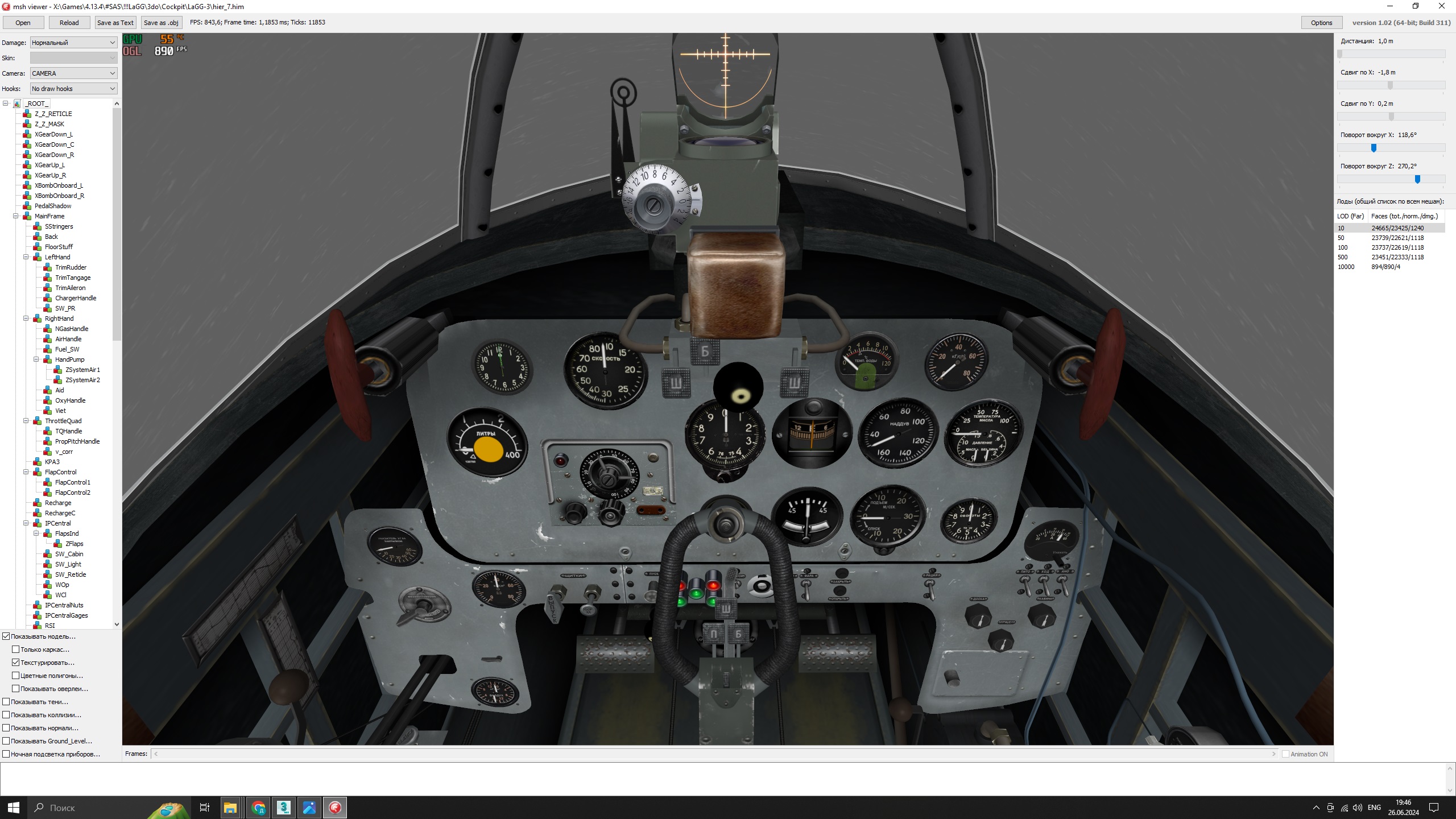 Бонусом сделал кабину ЛаГГ-3РД. Т.к. самолёт выдуманный, долго не думал, просто постарался убрать всё, что относится к поршневому двигателю. Для приборов взял текстуры от Me.262.