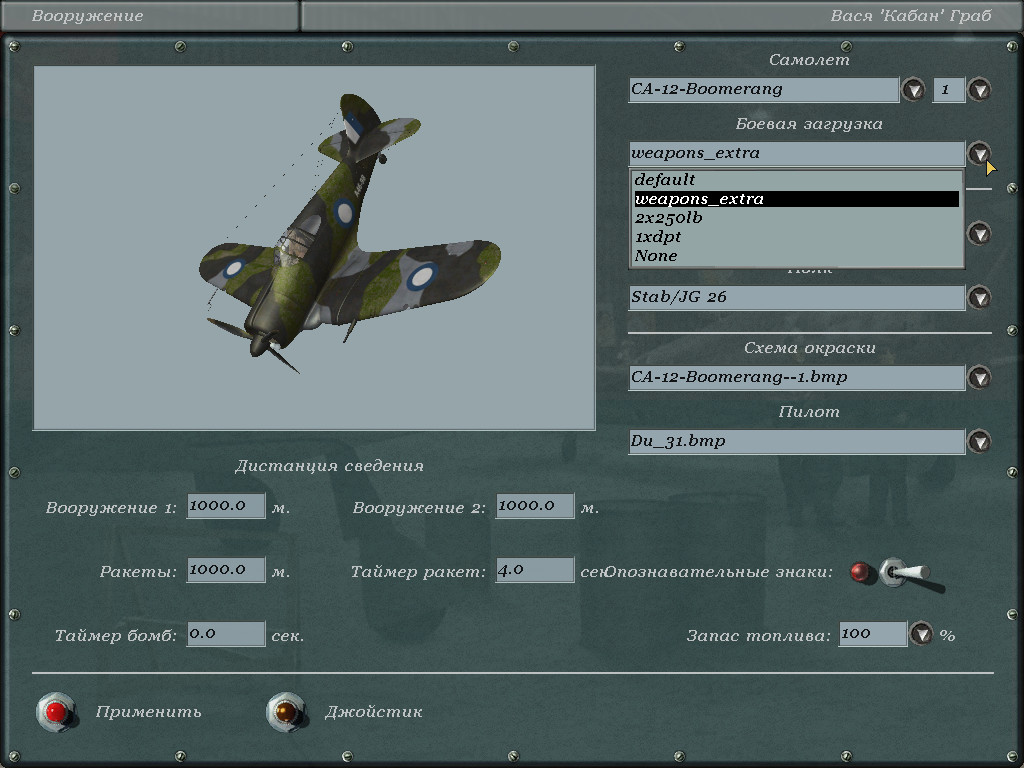 Поскольку я считаю себя немного причастным к его созданию, пытаюсь, по мере сил, довести этот самолет до идеала, который, как известно - недостижим ![]() Внизу в прицепе небольшой фикс (он меньше по весу) или вся кабина целиком, если "фикс" "не встанет" нормально. Для понимания посмотрите на рамку прицела на скриншотах Before (до) и After (после). Фикс из файла CA12_mini.zip разархивировать с заменой по адресу: ...\Ваша папка с модами\CAC Boomerangs\3do\Cockpit\CA12 Либо кабину целиком разархивировать по адресу (предварительно убрав от туду предыдущую папку "CA12"):...\Ваша папка с модами\CAC Boomerangs\3do\Cockpit\ |