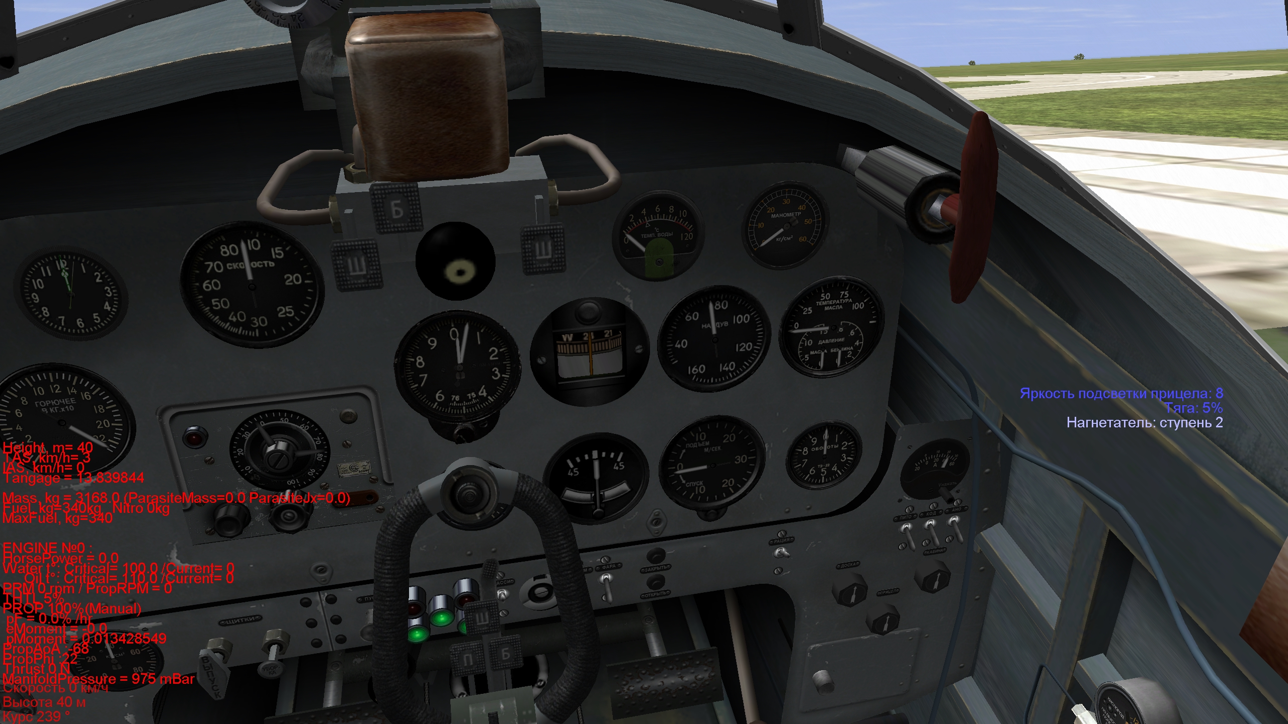 [Mass] Empty 2713.0 // 2610 пустой + 45 ШВАК + 23 БС + 22 ШКАСы + 13 радио по отчёту испытаний 7 сернии TakeOff 3280.0 //(из отчёта испытаний 7 сернии) Oil 25.0 Fuel 340.0 //уменьшили запас топлива 2713 + 340 + 25 + 90 = 3168 кг. Нашёл у себя мод (выдали его мне ДТ для кое-каких тестов, разрешение делиться им не давали) для 4.13.4, который отображает некоторые параметры. Так он и показывает 3168 кг. Стволы я включил в Empty т.к. в коде игры их масса нигде не значится. Масса балок РО и пилонов ДЗ-40 в классах тоже не значится, их массу я указал в классе самолёта. Код: