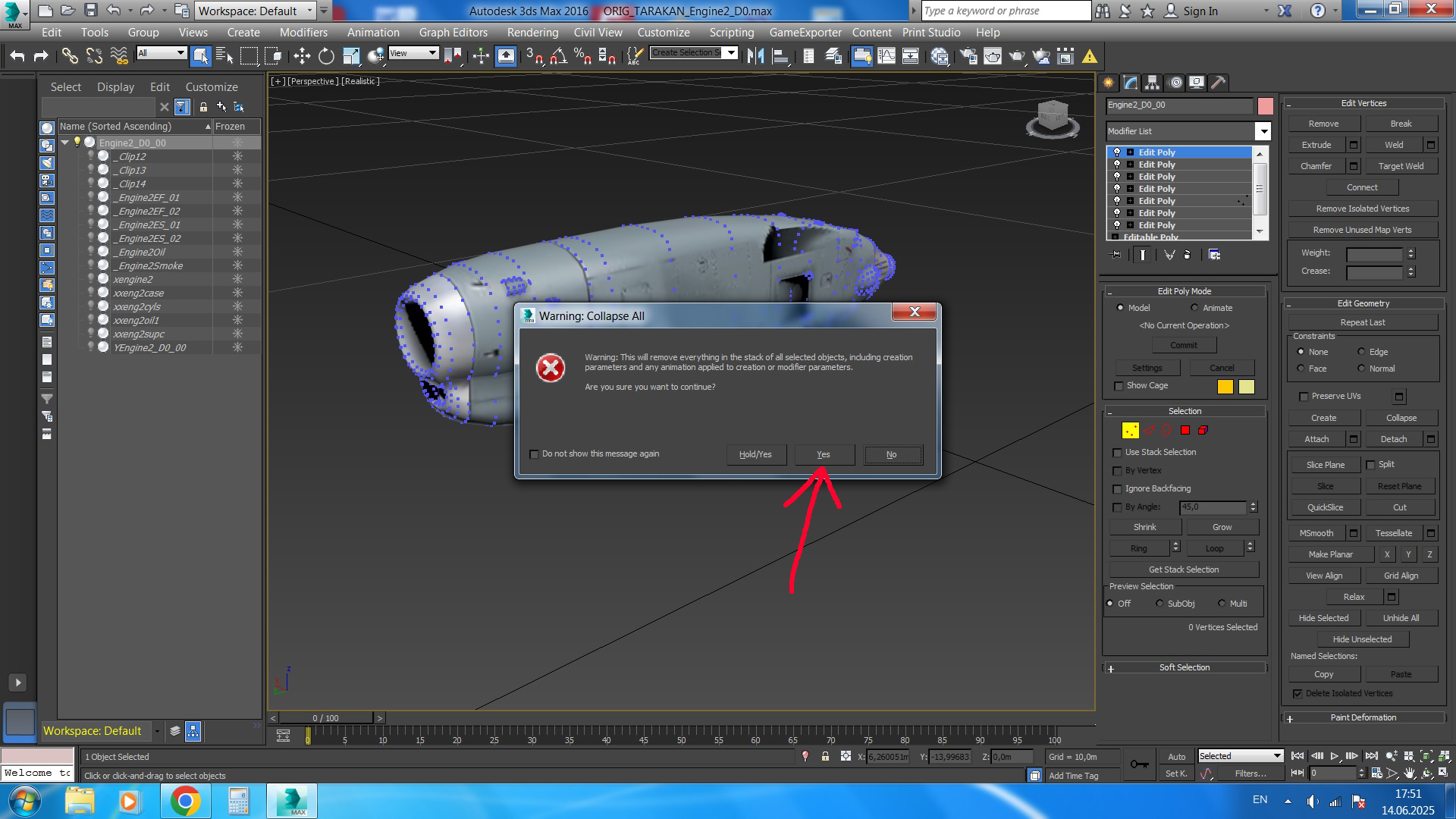 Похоже у меня не работает выделение всех вертексов на панели справа. То есть нажимаю на вертексы, появляются точки и их потом надо мышью снова все выделять, тогда всё работает.