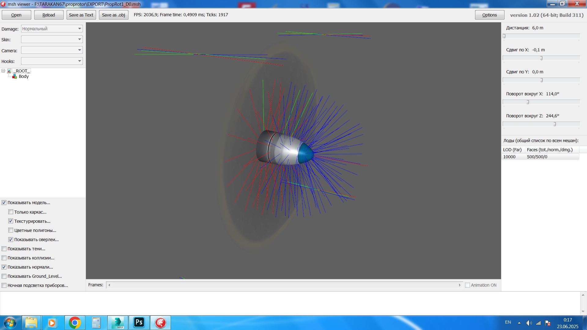 ПыСы После исправления нормалей можно поиграться еще с настройками освещения в файле mat004 , вот тут: [LightParams] Ambient 0.75 Diffuse 1.0 Specular 0.5 SpecularPow 16 Shine 0.0 В прикрепе мой экспорт в папке CMR_EXPORT, попробуйте PropRot1_D0.msh из этой папки в игре. Вдруг с правильными нормалями и уменьшенным Diffuse 1.0 в файле mat004 все придет в норму.