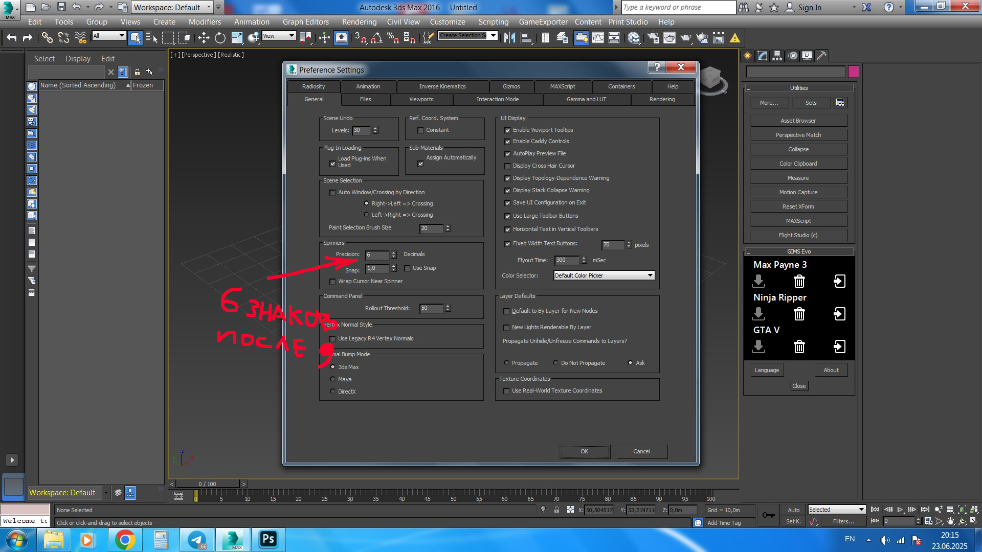 У меня всё было как на скриншотах. Единственно было не 6, а 3 знака после запятой, поменял, перезапустил макс, но нормали при экспорте остались как и прежде, увы