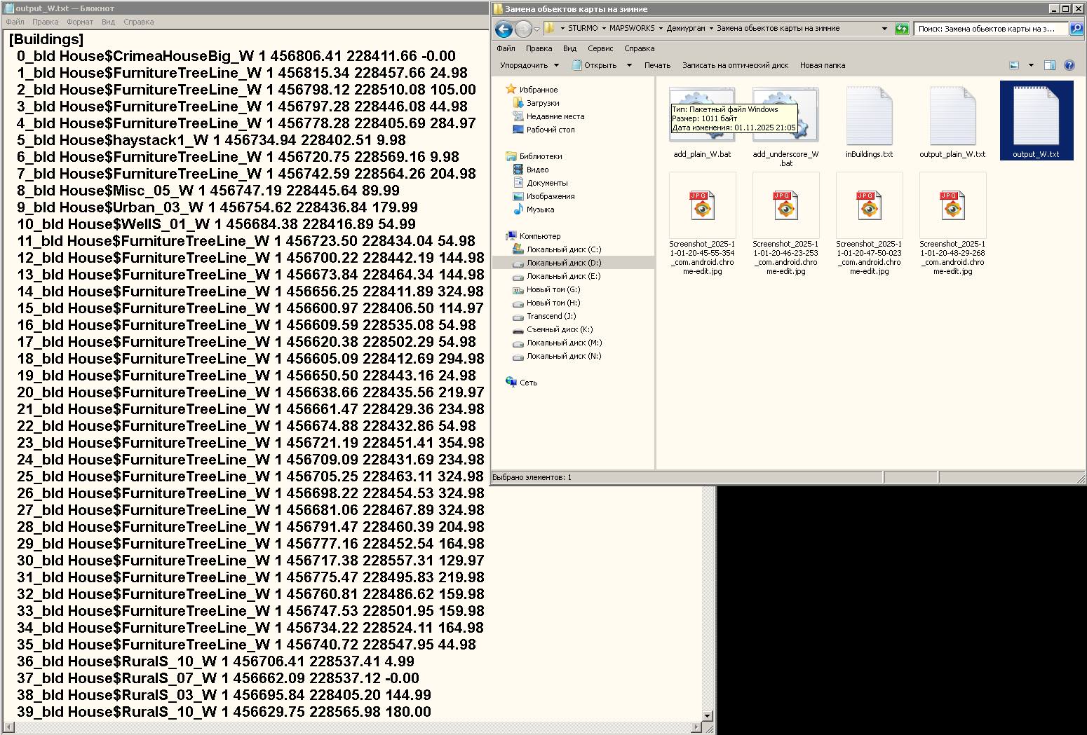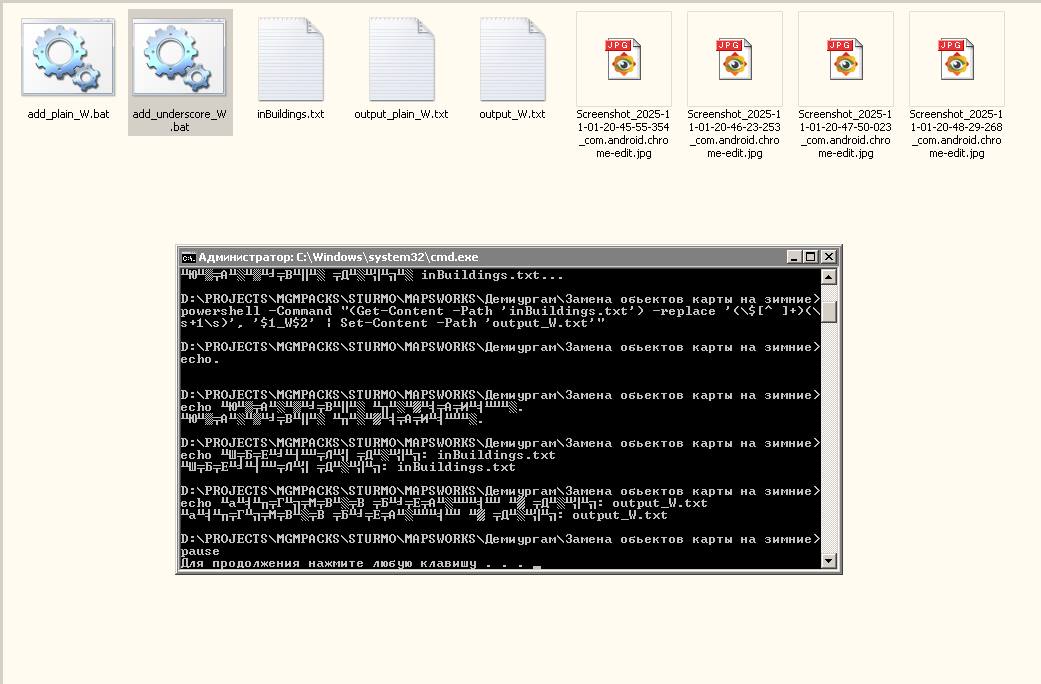 Короче, чтоб не елозиться с поименной заменой записей для обьектов карт в actors.static на зимние, запросил у Gemini состряпать простенькие батники.