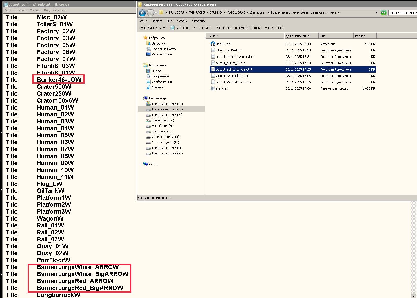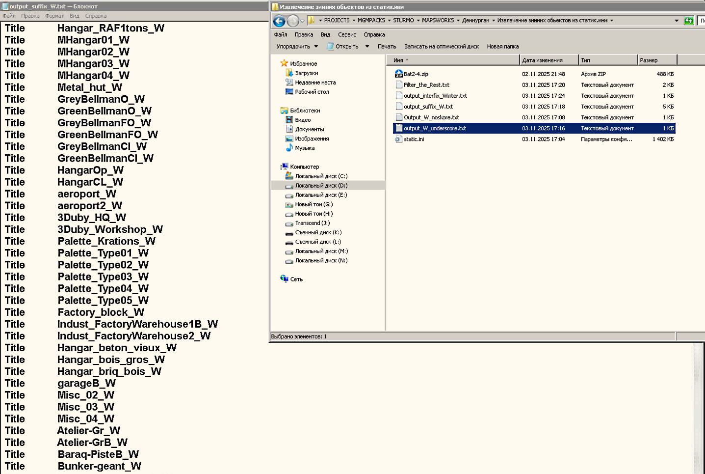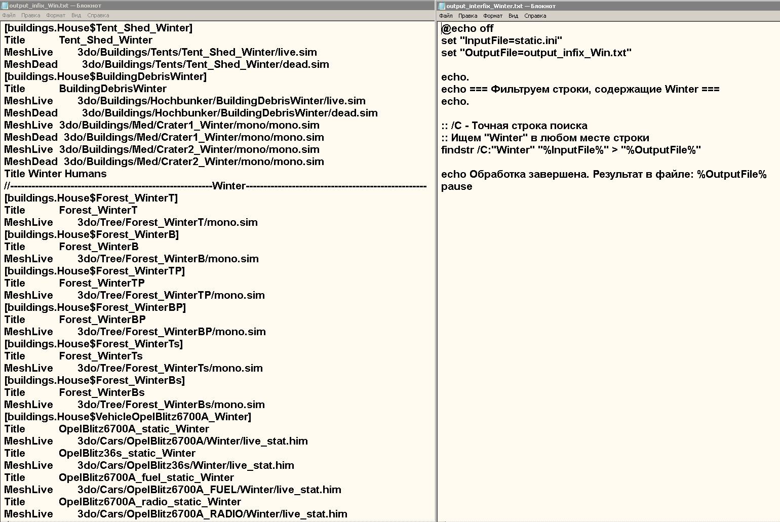 Почему спрашиваю: сообразил, что для раздельного переименования групп обьектов в зимние для InBuildings ( а многие в статик ини записаны с разными постфиксами) может быть полезен еще bat файл, который будет создавать разные файлы тхт и складировать в них отдельно извлеченные из статик ини строки с имен обьектов с постфиксом _W и отдельно с постфиксом W.