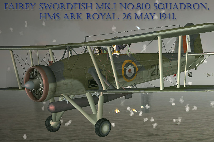 Fairey Swordfish Mk.I No.810 Squadron, HMS Ark Royal. 26 May 1941.