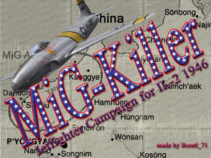 Вот еще одна статическая безмодная кампания автора Borstl 71, но не переведенная на русский язык (а может кто то уже и делал ее перевод, но у меня его нет). Кампания называется «Mig – Killer» (МИГ-убийца). Кампания довольно старая, но интересная, хорошо идет в современной версии V 4.13.2.m – Вы летчик-истребитель США, воюете в Корее в 1950 г и летаете на реактивном Р-80А. Может кто-то возьмется за перевод этой кампании? Или выставит уже переведенные брифинги – заранее спасибо!