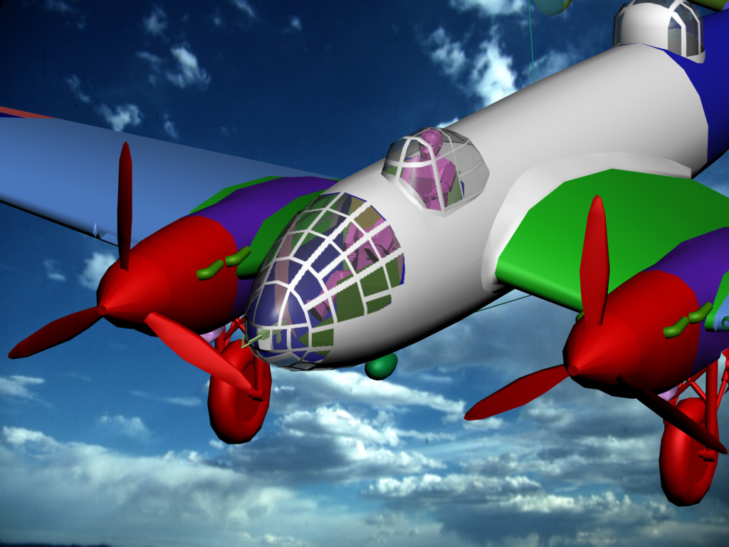 Носовая секция - как минимум остекление штурманской кабины - должно идти отдельным мешем, как хвост: при тяжёлых повреждениях она должна заменяться раскуроченой, а без отдельного меша так не получится.