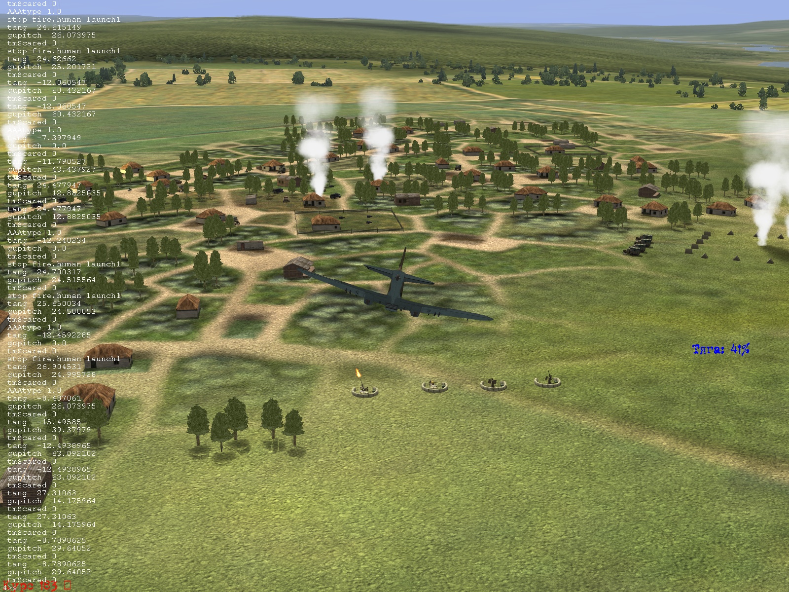 Вот было бы неплохо привязать вероятность ко времени "воздействия", а не каждый такт рассчитывать по новой. Не то чтобы оно сильно важно...но вообще когда поведение элемента игровой механики сильно зависит от производительности компа на котором игра запущена это неправильно в общем-то . Хотя, конечно, и так нормально. А насчет моделей обслуги я поищу, включаются-то они конечно в конфиге, но на самом деле там просто скрываются-показываются элементы меша, и вполне может быть что сделать это в твоем коде несложно. Зависит только от того, насколько сложно из логического объекта "зенитка" получить сцылку на объект меш, если также как в самолетах - то проблем быть не должно.