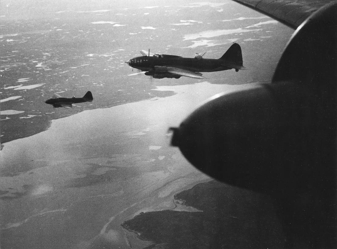 датировано как 1941, ДБ-3Ф МТАв ВВС ЧФ над Дунаем. Дунай точно, но вот насчет 1941 не уверен - тогда чаще с бомбами туда летали, судоходством в этом районе вплотную занялись позже...