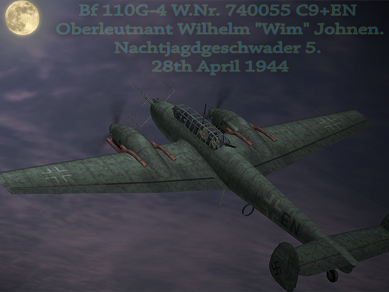 Bf 110G-4 W.Nr. 740055 C9+EN Wilhelm "Wim" Johnen. 5./NJG 5 http://aviaskins.com/downloadskin.aspx?id=1035&lang=en