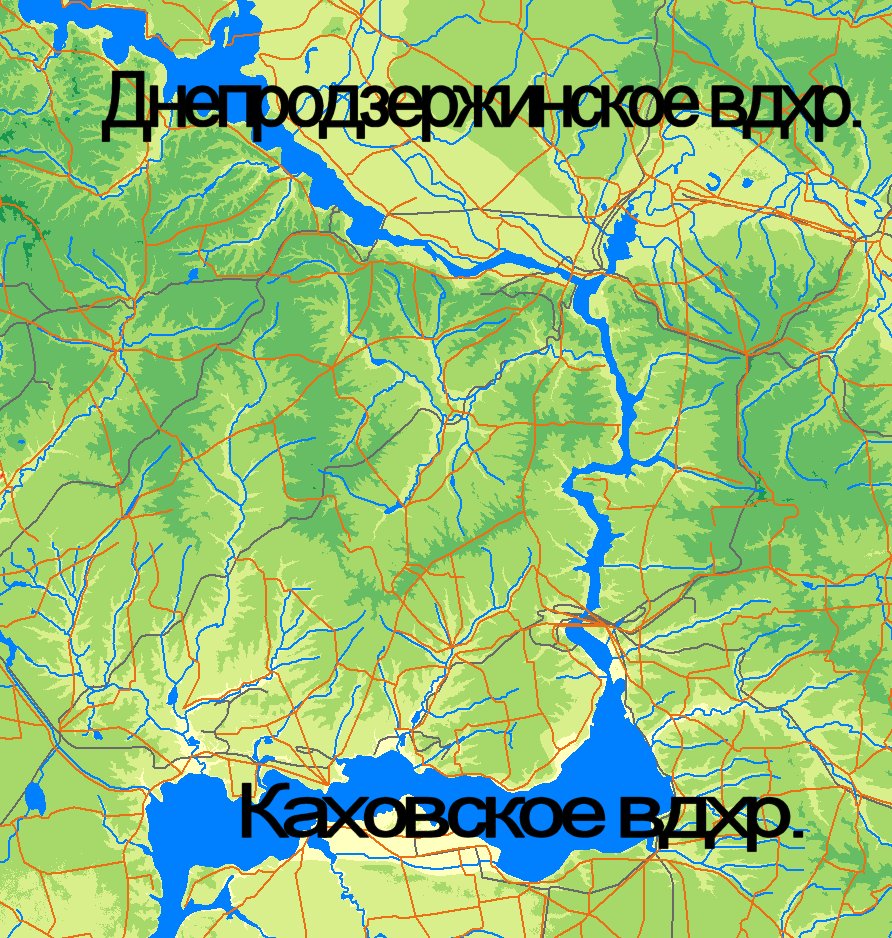 Найти как выглядело русло Днепра без них в 41-45 гг не удалось. Поэтому решили делать современное русло со всеми этими водохранилищами. |