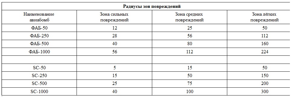 При сравнении таблиц обращаем внимание, что даны разные формулировки, и я думаю неслучайно 1. Разрушения 2. Повреждения В первом случае однозначно речь идет об зданиях. Но вот во втором - не исключено имеется в виду урон живой силе. Имено термин "повреждение" используют для оценки воздействия на человека. Тогда что же получается??? По себе знаю(попадал в такую ситуацию), что при ударной волне, когда вылетают стекла - человек практически не получает травм, не считая звона в ушах или временной глухоты. Травмы от стекол или других побочных предметов не учитываем. Т.е слабые разрушения и слабые повреждения - это не совсем одно и то же. Несомненно для меня одно - подавляющее количество советских бомб имело схожие характеристики с немецкими. Бессмысленно пытаться учитывать расположение взрывателей, конструкцию бомб, время задержки, состав ВВ. Это слишком огромный объем данных, который невозможно адекватно учесть в игровом процессе. Начинять ТГА все средние и большие ФАБ, как сейчас - категорически неправильно. Что допустимо для оффлайна - очень мешает в онлайне. |