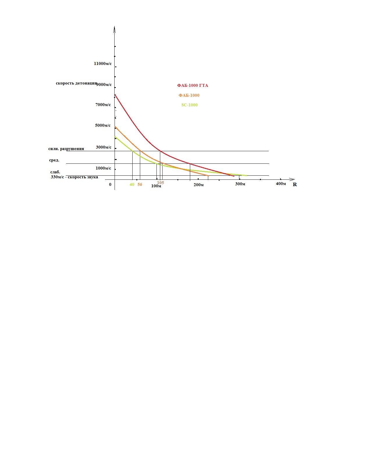 ![]() Не судите строго! Примерно так должны выглядеть радиусы разрушения, фугасов разных зарядов. У ФАБ-ТГА скорость затухания должна быть ещё больше (не стал переделывать), поэтому радиус сил., и сред. разрушений немного должны сместиться в меньшую сторону. P.S. Очень большая скорость затухания Взрывной волны у эпицентра взрыва (взято с графика затухания скорости В.в. .... у меня нет объяснения но возможно что прямо пропорционально сказывается давление (сопротивление) Воздушных масс на см/кв. от скорости. |