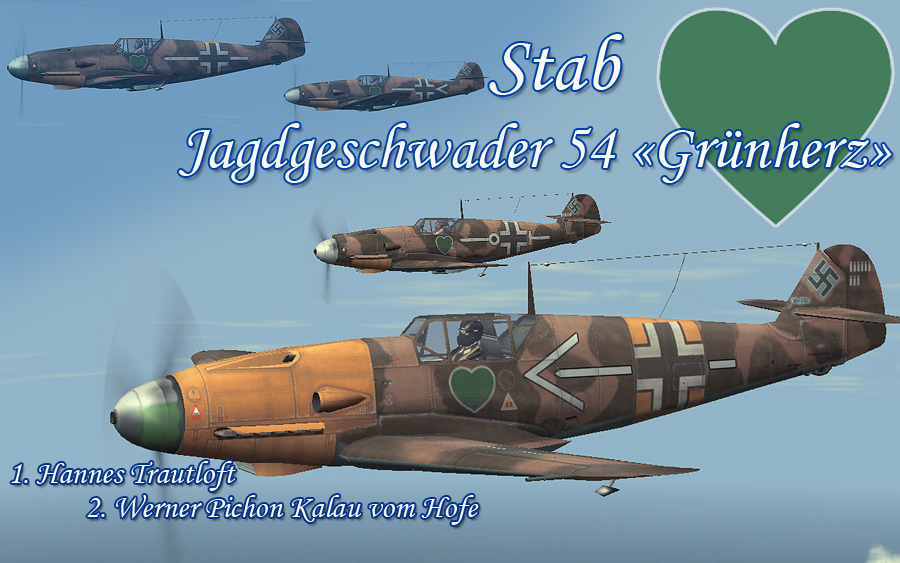 Барбаросса Stab Jagdgeschwader 54 «Grünherz» 1. Hannes Trautloft 2. Werner Pichon Kalau vom Hofe http://aviaskins.com/downloadskin.aspx?id=1318&lang=en