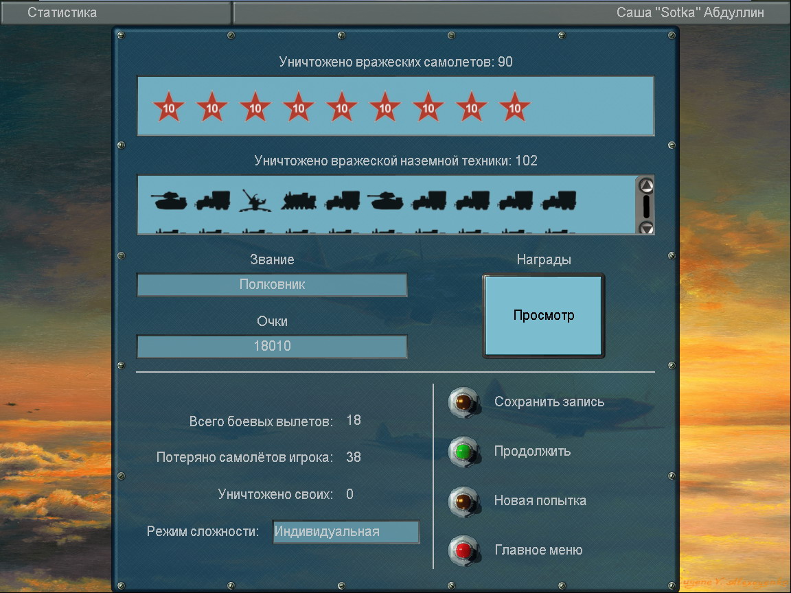 У меня при просмотре трека ВОСЕМЬ раз зажглась надпись "Самолет противника уничтожен".