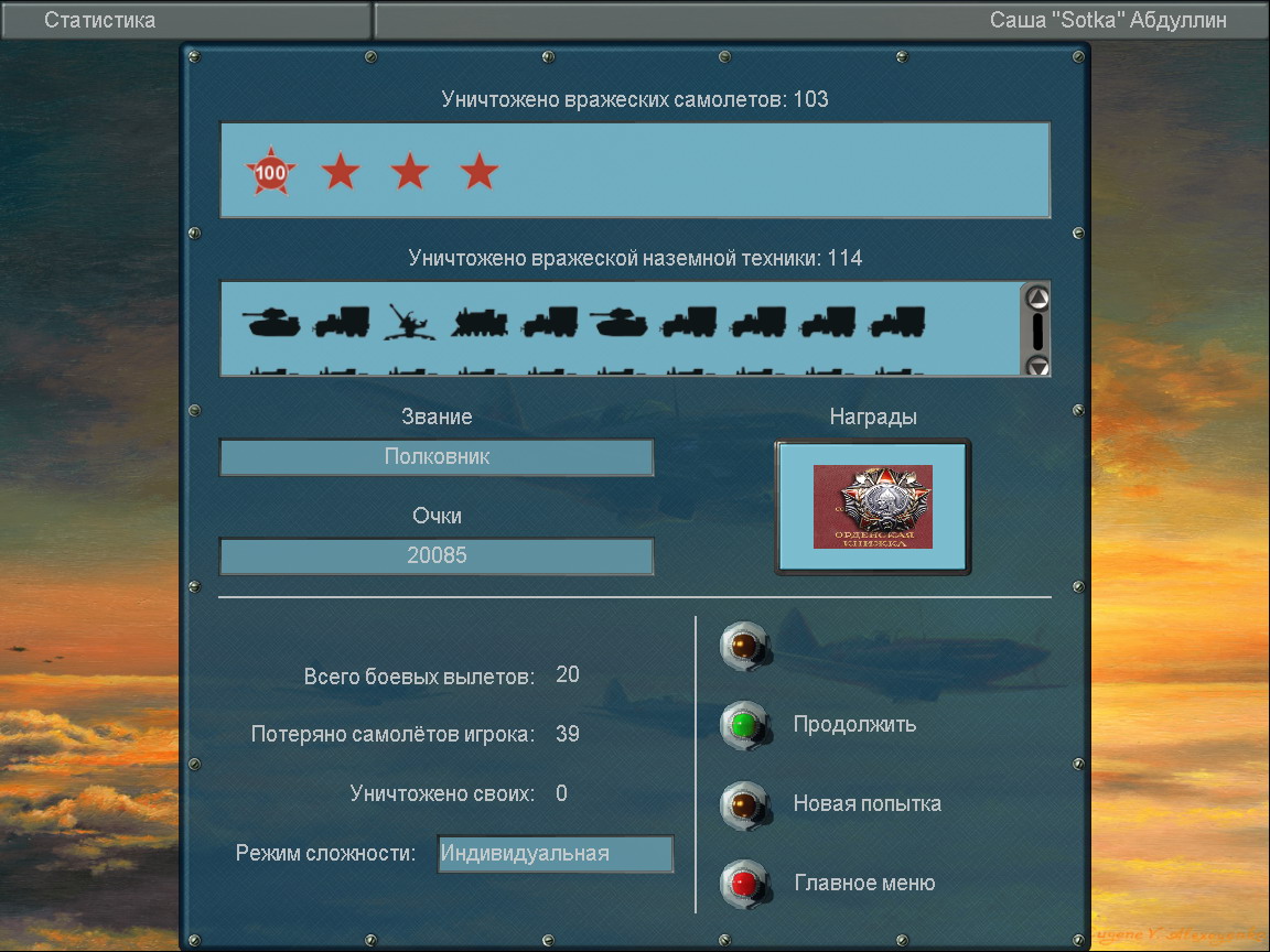 Сделал 20-ую. 4 килла. Теперь- ровно 99 сбитых!