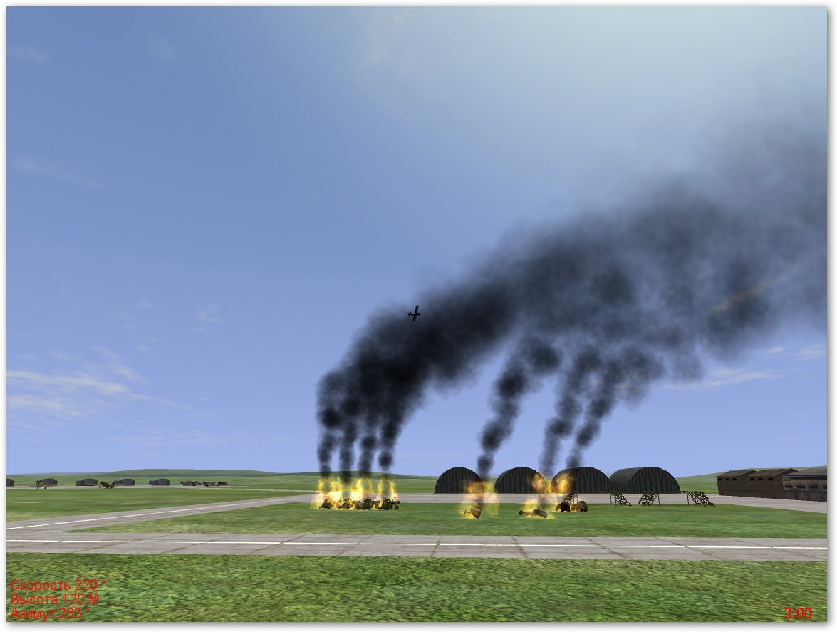 Вот ещё бы сделать дымы от пажара самолётов сносящиеся также как пыль при взлёте - назад... от воздушного потока винта =) Тогда будет совсем всё шикарна =)