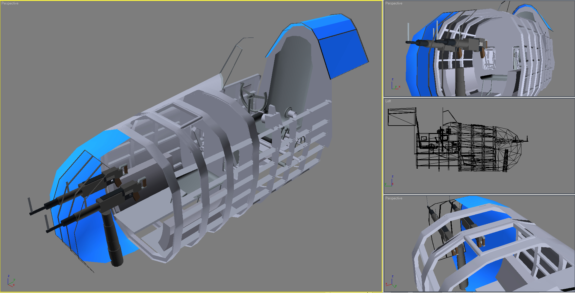 Продолжайте в том же духе! Совет-убирайте лишние полигоны с мелочёвки и особенно бортов в кабине штурмана. НА каркас в кабине штурмана можно полигонов добавить чтобы смотрелся поровнее +смело удаляйте полигоны которые не будут видны при виде из кабины. Постарайтесь уложиться в 10000 полигонов.