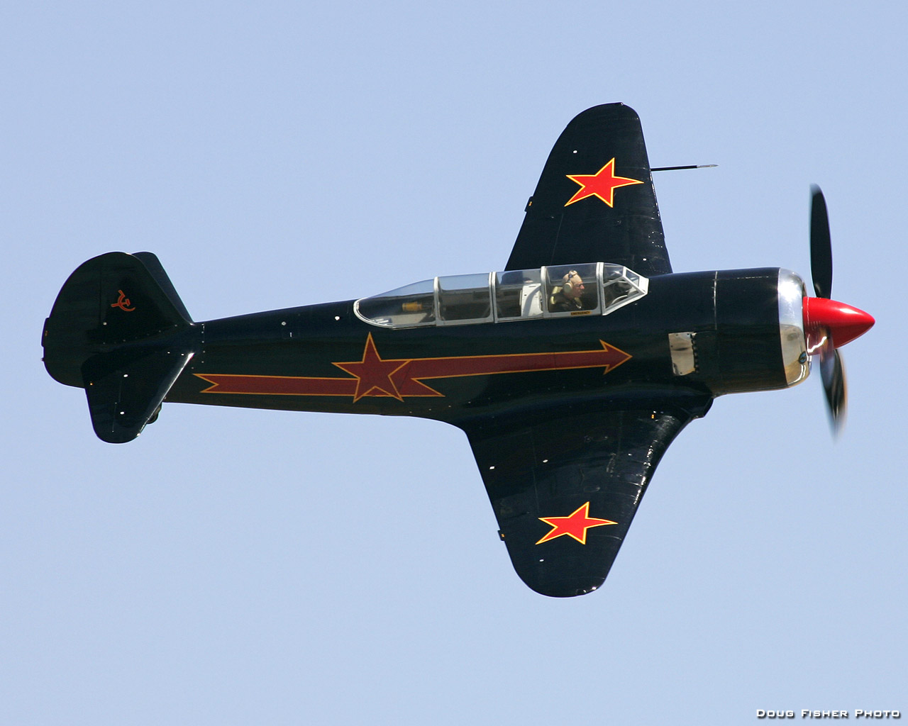 Блестящий, чёрный с красными звёздами и стрелой явно не с мотором АШ-21. Явно просматриваются семь выхлопных патрубков, чтто говорит о двыхрядной звезде, скорее всего американского происхождения. Скорее этот самолёт только похож на Як-11, но не более. Последний раз редактировалось LOOdNO; 01.06.2010 в 23:47. |