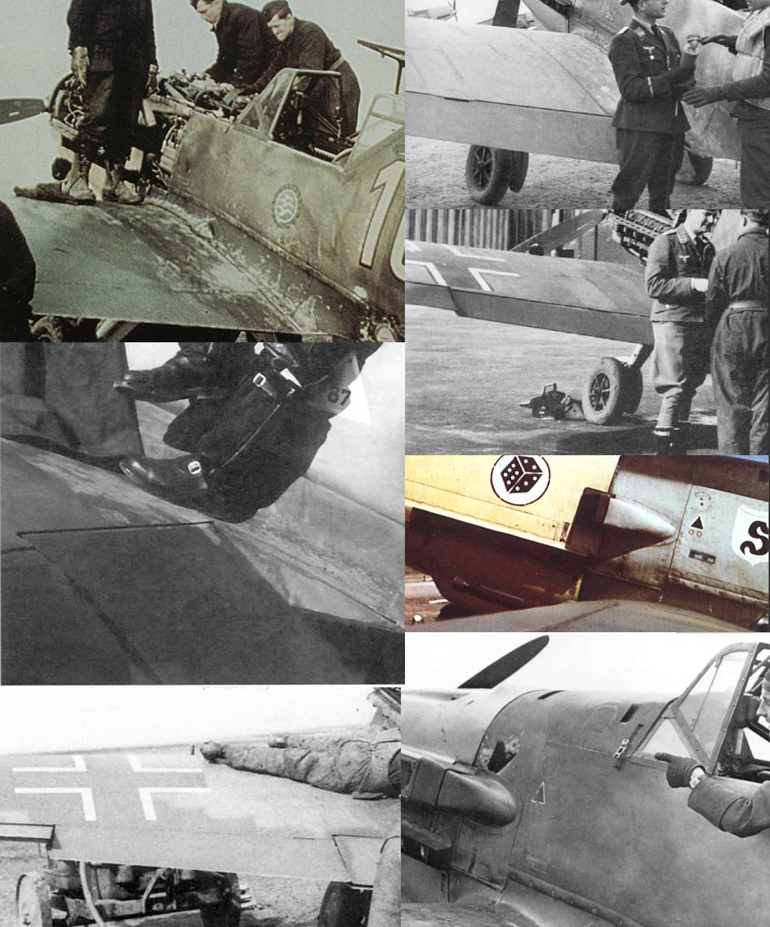Далее это «тень» на закрылках. Уверяю тебя, такого быть не может ни на одной модификации 109-ых не на закрылках, не на элеронах. Такова конструкция этих узлов. В закрытом положении две эти плоскости как бы составляют одну, без каких либо углублений и порогов. Верхний лист крыла находит как бы внахлест. Даже при полностью опущенных закрылках, ты не увидишь, там какого-то сильного порожка. В аттаче крылья Е/Ф/Г. Зато вот как раз снизу эти моменты можно было сделать «пожирнее» Там как раз в реале, и углубление, и щель, и порожек.