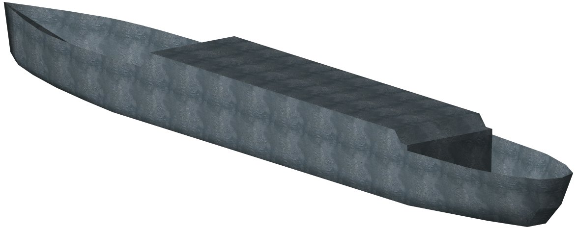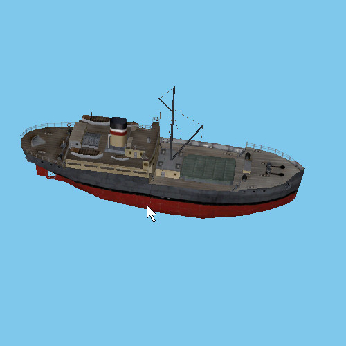 Я, увы, в 3Д-моедлировании дуб-дубом, так что тока идеи могу подкинуть. :-) Из вот этого пассажирского лайнера ещё и речной пароход можно сделать, колёсный (колёса ж уже есть). Колёса присобачить, одну трубу посередине оставить, в бЭлый цвет покрасить - готово. Одна тока проблема - у колёсных должен быть не один кильватерный след от кормы, а два из-под колёс. Но это мелочи, в принципе, сойдёт и без этого. :-)