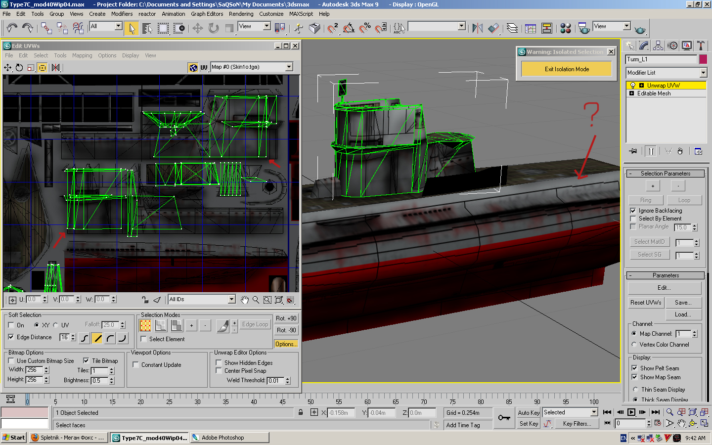 ![]() ![]() Сегодня попробую сделать некоторые улучшения и доделывать. Насчет оригиналов лодки с ПСДшниками - это отлично, но он меня не пущает, требует логин-пароль. Но все равно спасибо! П.С. короче, взял и переделал по-новому весь мэпинг основного меша корпуса. 3 части соединил, потом разъединю снова. Сделал все встык. Смотрится как на оригинальной (заходил в Ил-2, смотрел как оно там сделано).