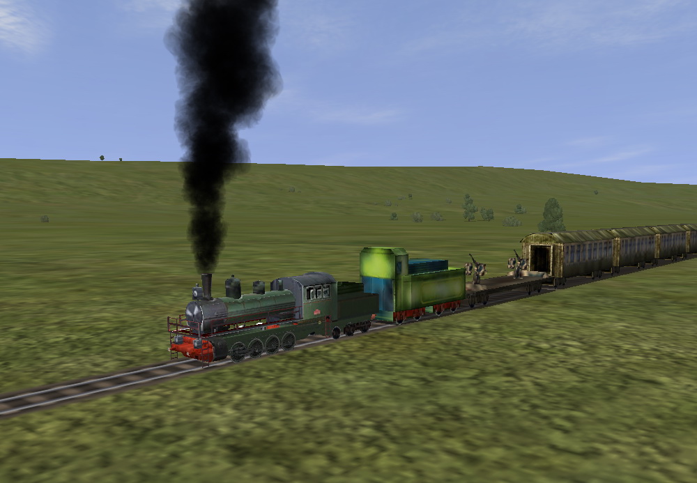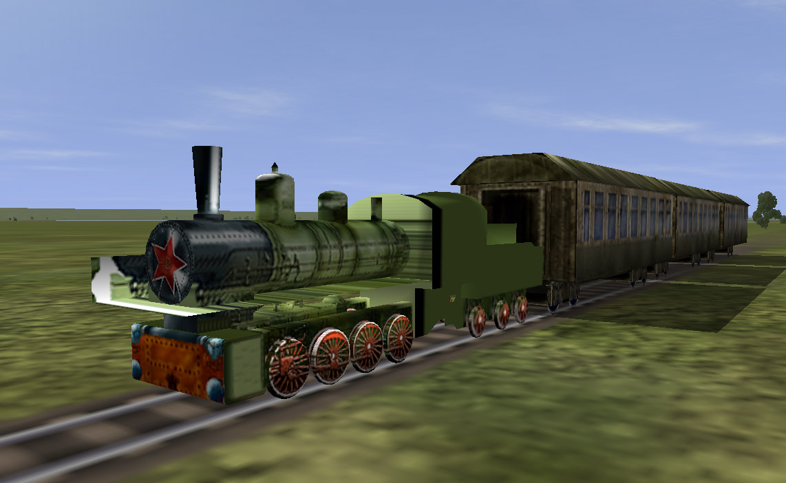 Для меня щас нужно чтоб испытали КАК поправить углы обстрела - некогда тестить... Для ЭТИХ вагонов я конечно нарисую повреждения( чуть позже), но лучшеб специ нарисовали ПРАВИЛЬНЫЕ вагоны и паровоз...