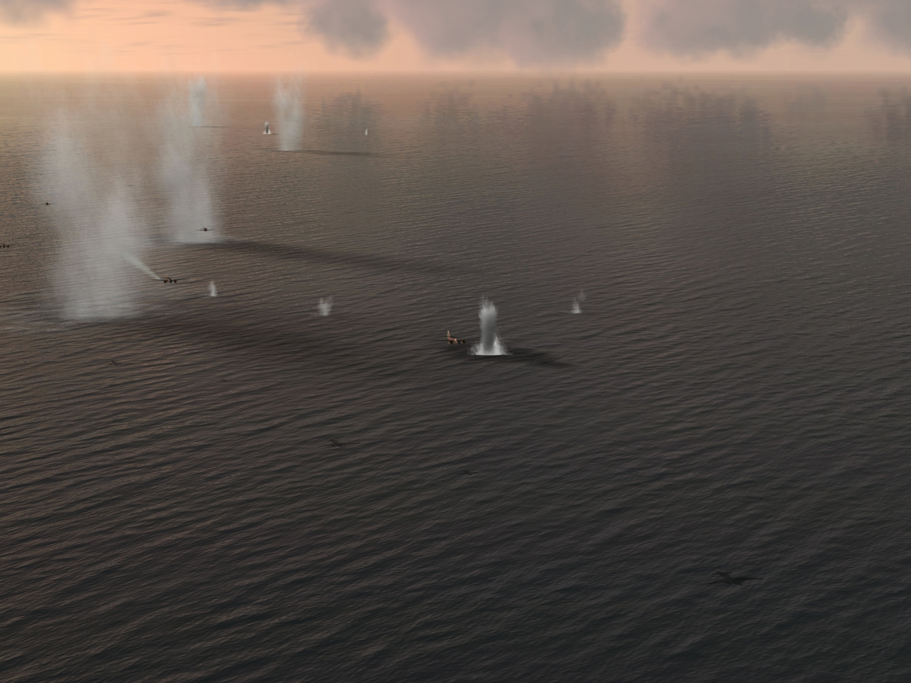 Посмотрел я на взрывы на воде повнимательней и пришел к выводу что нет во всех модах которые мне встречались кругов брызг вокруг самого взрыва. Стандартные круги-брызги расходящиеся в ИЛ-2 на воде вокруг взрыва какие-то совсем слабые.