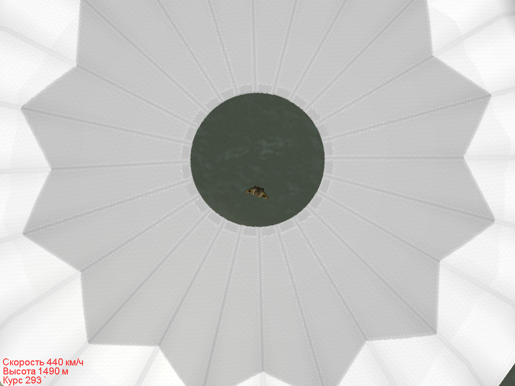Пробовал разные варианты. Это наиболее близкое к реальному парашюту. Помогал тестировать (из 15 разных вариантов) друг. Сравнивал с фотографиями. Советовался с Кириллом.