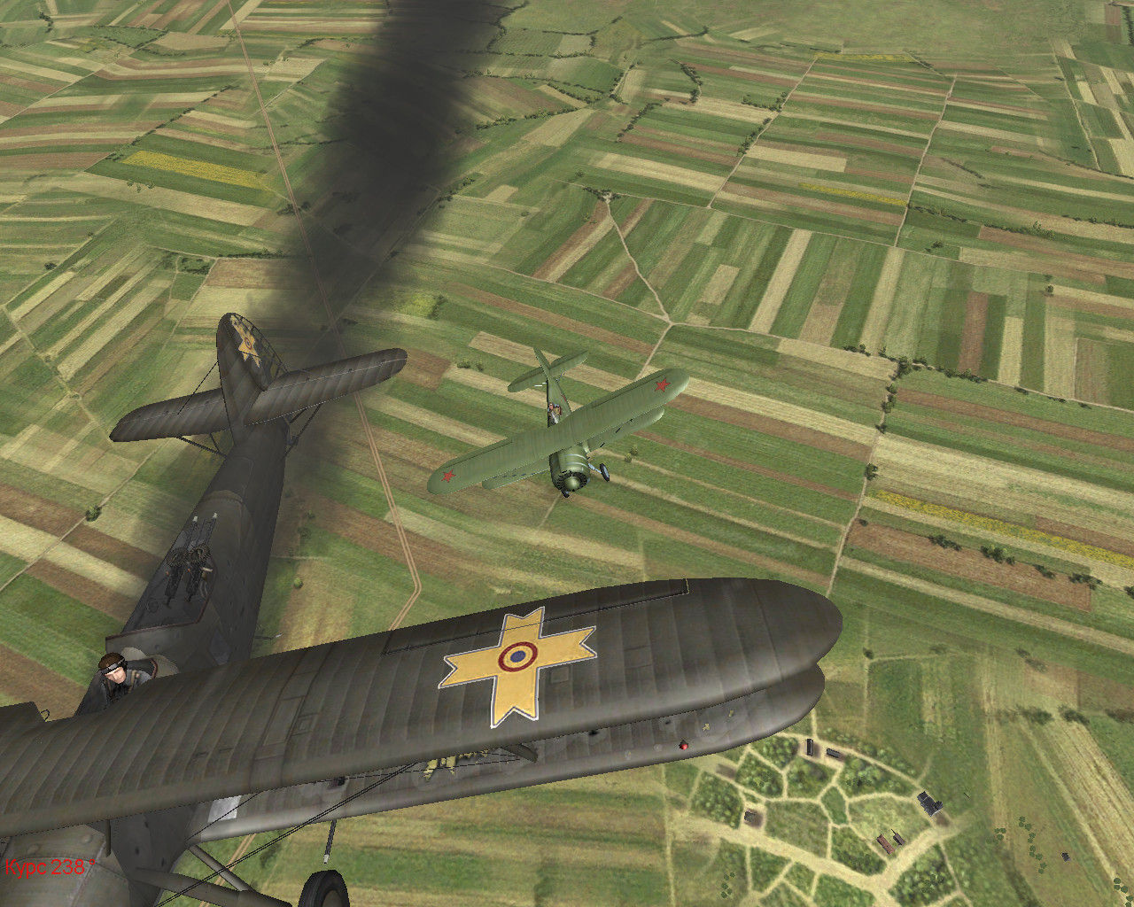 Воздушные бои интересны.Хорошо бил Летовы - 4 штуки, IAR -2 шт., Хенкель( истребитель) -1 шт. На И-15-бис тяжко бится с ними. Уходил на бреющий, подставлял хвост, потом гасил скорость, "проваливался" и над самой землей бил их снизу вверх на проходе. Одному удалось раздолбать маслорадиатор, он вскоре потерял скорость и я его жестоко расстрелял в упор, пока его собратья выцеливали меня. Свои потери -1 самолет.