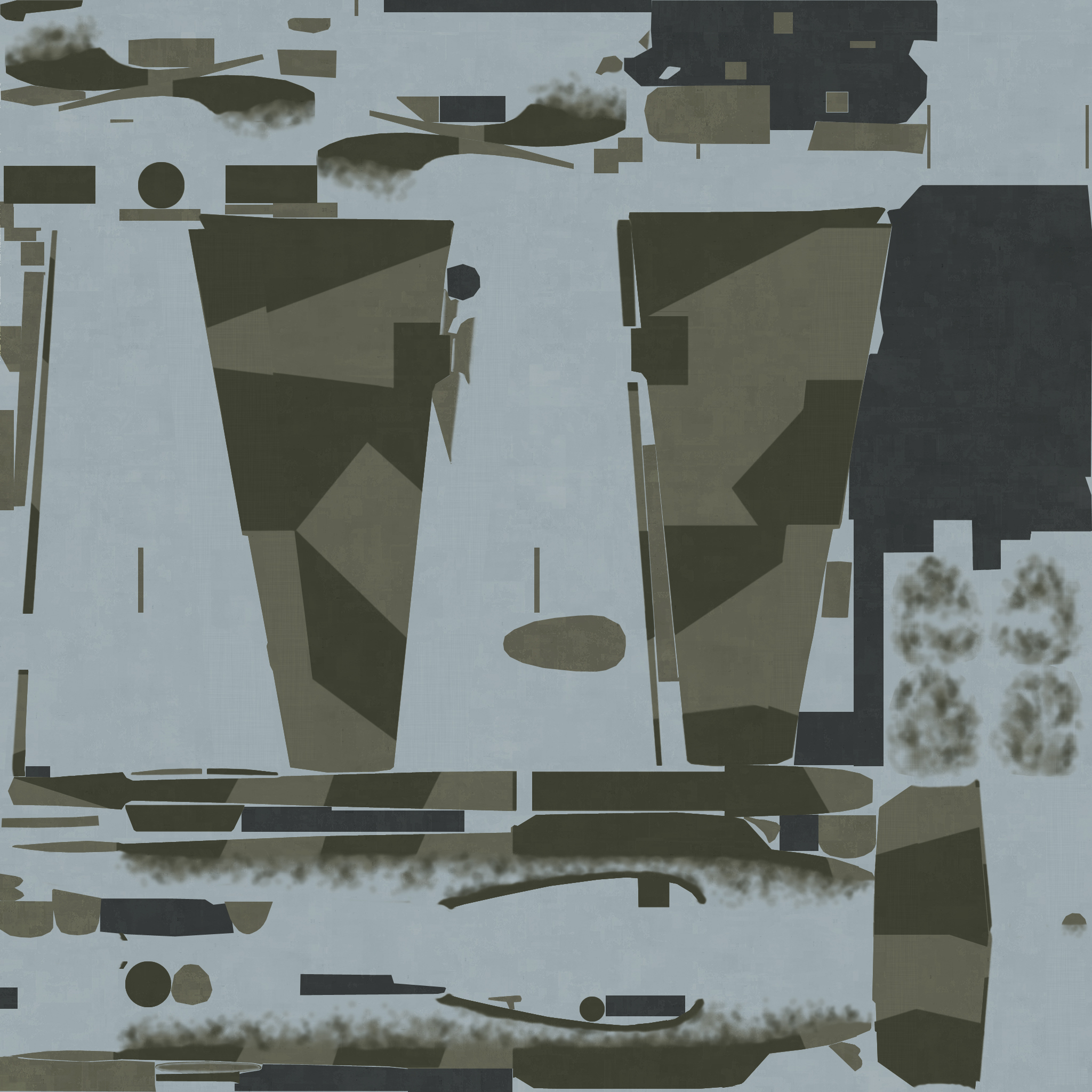 В знакомой еще по ИЛу папке PaintSchemes\Skins\Bf-110C-4\ лежит децл файлов *.mrk, которые - вероятно - определяют расположение о/з, б/н ЭБИ и проч. на модели, и еще меньший децл *.jpg размером 2048х2048, представляющих собой просто поля камуфляжа (пример в аттаче).
