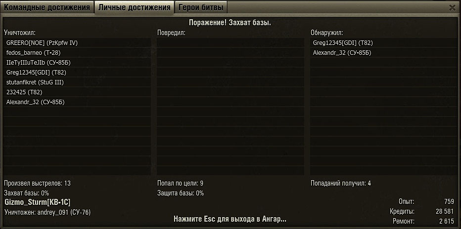 Амерские ПТ Т82 такие смешные... Лопаются с одного выстрела. См.скрин. Единственное, что плохо, промахнулся много, да и в Пц4 пришлось три выстрела сделать, некогда было выцеливать, он наши арты душил, но все равно не успел, потому как сам гуслю потерял... Да, и штуга вслепую в лоб с одного выстрела... ![]() PS. А кто в курсе, когда будут за КВ второй слот давать? Ну, чтобы успеть прокачаться, ведь хочется на халяву экипаж 100 и слот за 300 получить... ![]() А то лично я не понял, вроде в июле... вместе с немцами... или нет? Последний раз редактировалось DiMu; 30.06.2011 в 10:46. |