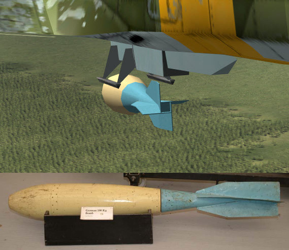 Бомбовая загрузка сего самолёта такова - 4 х 250кг,8 х 100 кг или 16 х 50 кг.С 50кг и 250 кг вроде понятно - как вариант это SC50 и SC250.(Кстати SC250 полноценно вытащить так и не удалось - пишет про отсутствие материала и в максе не открывает.)А вот с бомбой в 100 кг непонятно - то ли это SC100 (не основной калибр и в Иле отсутствует),то ли это просто 100кг-я бомба (то же отсутствует).В любом случае придётся делать.100кг я завтра-послезавтра доделаю - осталось мелочи в текстуре дорисовать.А вот с SC100 трудности - есть ориентировочный рисунок,но нет точных габаритов.В связи с этим у меня к Вам просьба (несколько):