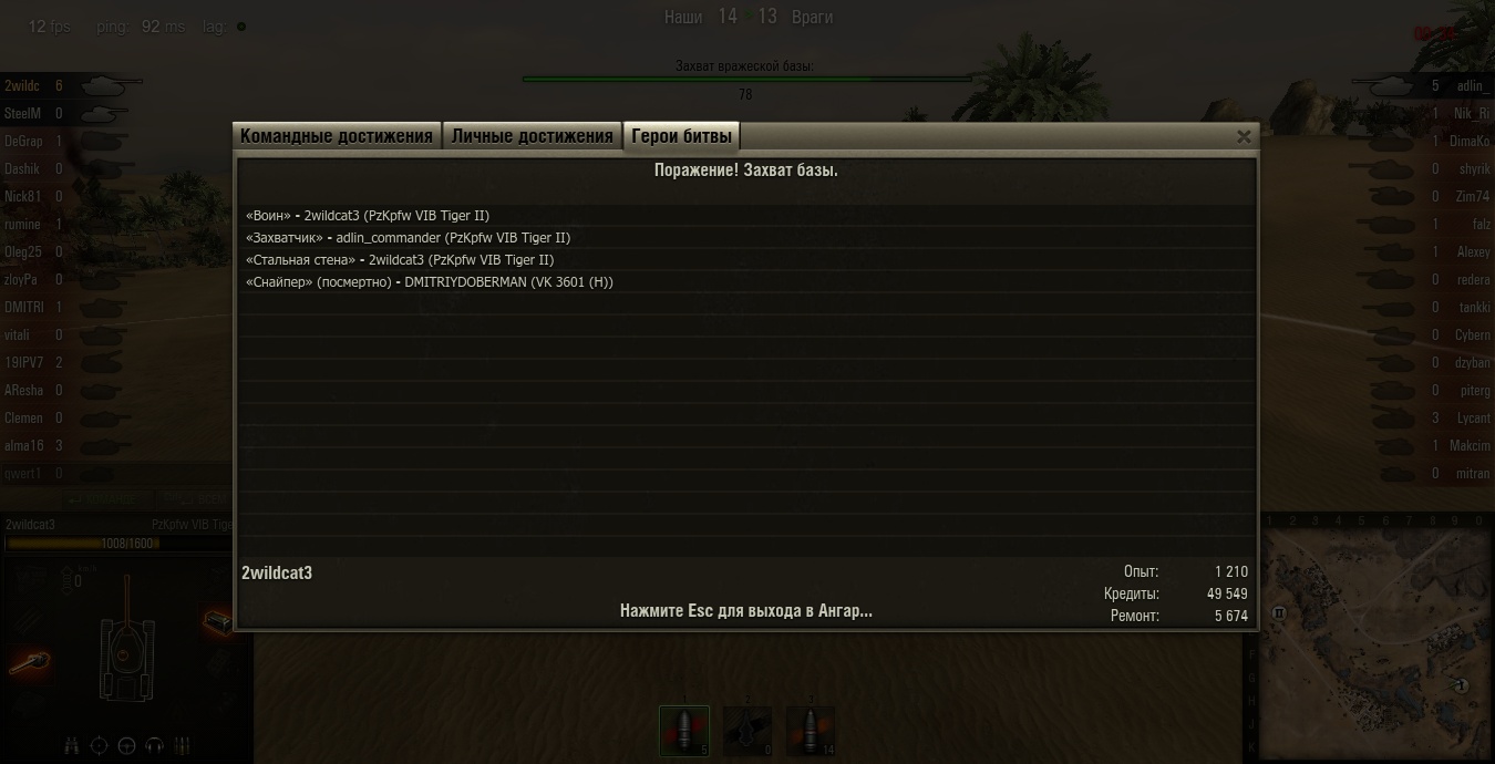 Тигра-2 нОгибает. Причём, я разбирался в одиночку с 2 КВ-3 и Львом. После приехал на базу- ухлопал Хуму. ВК с 83 процентами попыталась сбить захват- обломилась.