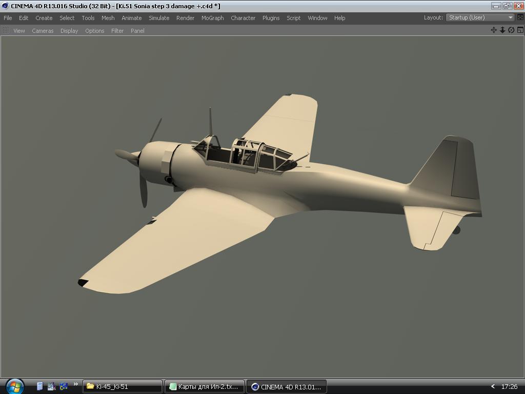 Делая крылья радиатора, обратил внимание на неверно сделаный моторный отсек. Переделываю. Заодно поправил пузо машине. Каждая сворка основного радиатора является независимым объектом с установкой оси Y таким образом, чтобы створка открывалась корректно ("как дверца")