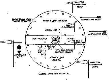 Вот что в современных требованиях по устройству обеспечения аэродромов: "МИНИСТЕРСТВО ТРАНСПОРТА РОССИЙСКОЙ ФЕДЕРАЦИИ ДЕПАРТАМЕНТ ВОЗДУШНОГО ТРАНСПОРТА УТВЕРЖДЕНО приказом Директора Департамента воздушного транспорта от 19.09.94 № ДВ-98 Руководство по эксплуатации гражданских аэродромов Российской федерации (РЭГА РФ-94)" "3.2.9. Посадочный Т-образный знак обозначает место приземления ВС и включает комплект из 6 полотнищ: трех - белого и трех - красного цветов. Размеры сигнального полотнища для аэродромов всех классов равны 51 м. Т-образный посадочный знак выкладывают из двух сигнальных полотнищ на ЛП в 3,0 м от края ГВПП с левой стороны посадки ВС и на расстоянии от ее начала: 200 м для аэродромов класса В; 150 м - класса Г; 100 м - класса Д; 50 м - класса Е." Вот фиг знает, но я сам видел на ДОСААФовских аэродромах полотнища по 50 м, правда шириной в 1 м и из них выкладывали Т и пр. знаки. Вот что говорит Большая Техническая Энциклопедия издания 1927 года: "По международным правилам каждый А. должен иметь установленные постоянные и временные знаки для управления полетной работой. Постоянные знаки: 1) указатели направления ветра (вымпелы) от 1 до 3, устанавливаемые за пределами рабочей площади в наиболее заметных с воздуха пунктах с отчетливым проектированием на фоне земли; 2) белый круг (зимою черный) в центре рабочей площади, с диаметром равным ширине нейтральной полосы (20 — 30 м); 3) белые круги (зимой черные) диаметром в 1 л* для обозначения границ аэродрома; 4) сигнальная мачта с вымпелом и черным шаром, обозначающая открытие полетов. Временные знаки: 1) указатель направления ветра— посадочное «Т»> состоящее из двух полотнищ размером 8X2 м и 5x2 м; 2) указатель направления круга полетов над А.: черный треугольник—круг вправо, черный квадрат—круг влево; 3) два полотнища размером 8x2 ж для креста, запрещающего посадку.." Последний раз редактировалось Karabas-Barabas; 04.03.2012 в 13:32. |